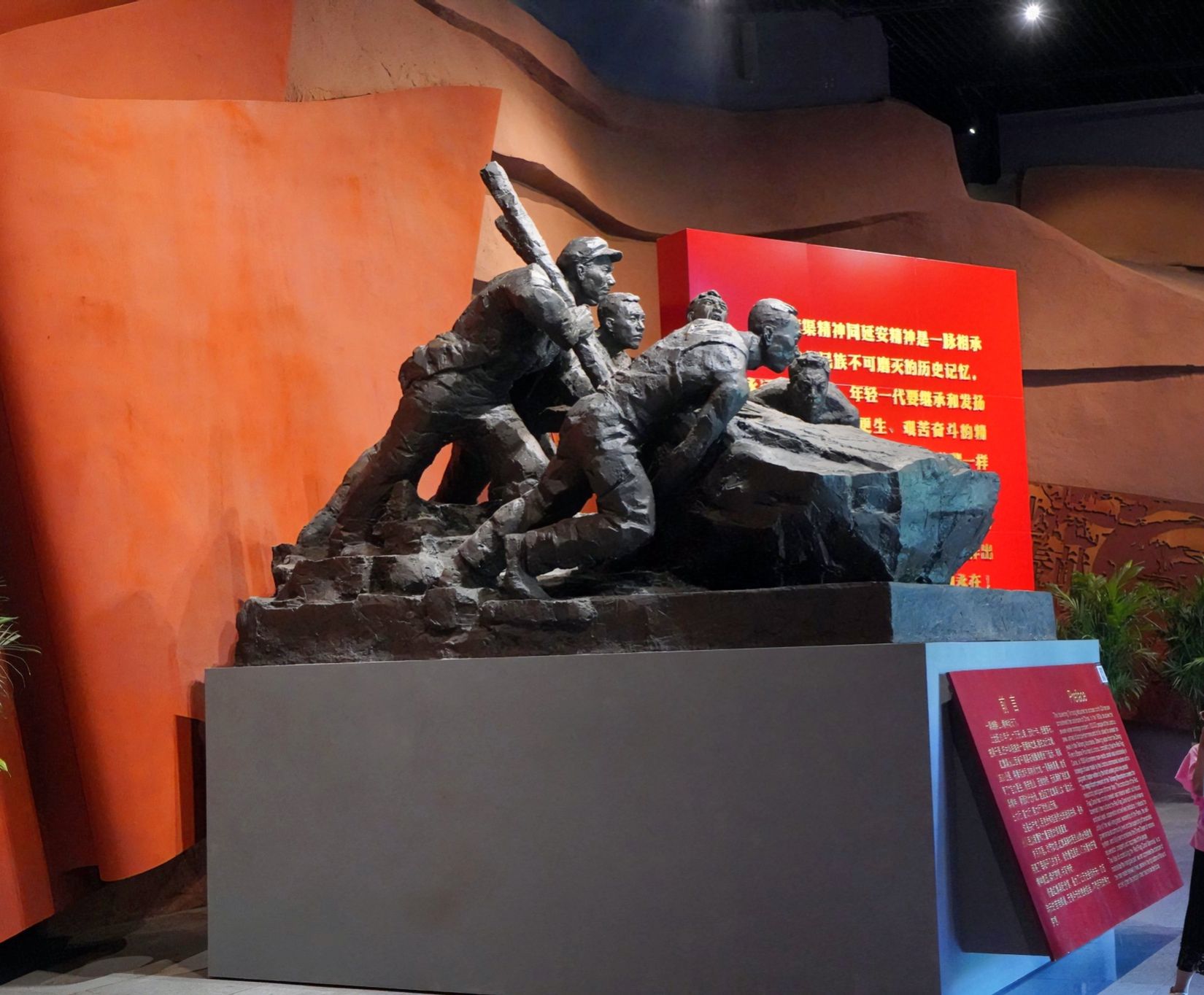 攀上台阶,走过“虎口崖”“水长城”,来到红旗渠修建过程中难度最高、危险最大的咽喉工程——青年洞。在如雄鹰耸立崖边的洞口旁,大家纷纷惊叹300名青年以愚公移山的精神,在没有任何机械辅助下,全靠最简单原始的人工凿洞最终胜利完工的伟大壮举。