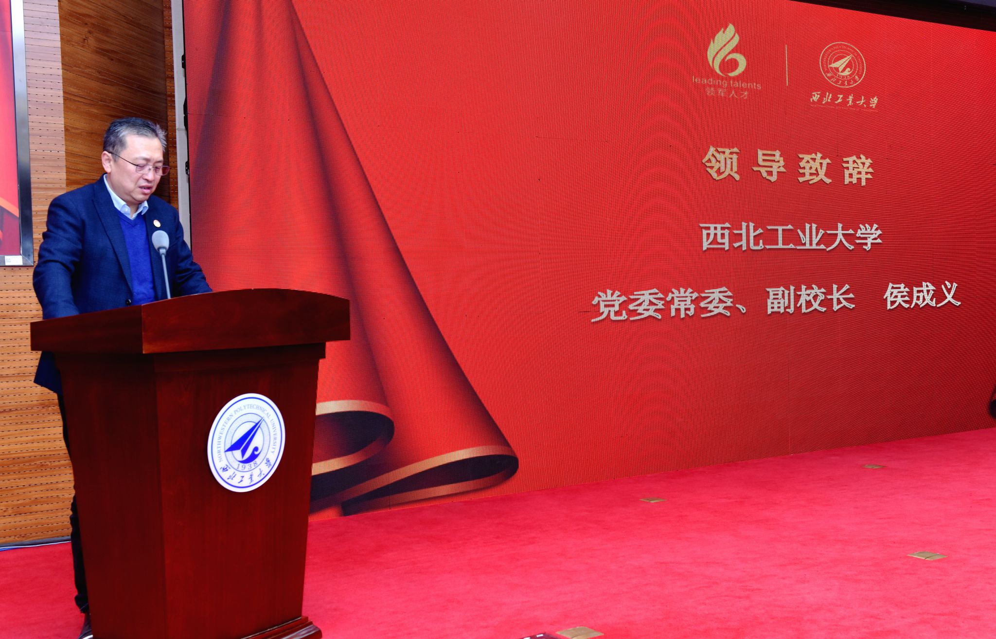 西北工业大学副校长侯成义致辞,他代表学校对新学员表示热烈欢迎,对顺利结业的学员表示诚挚祝贺。他讲到:“今年11月工信部金壮龙部长来校调研时也指出,服务支撑加快推进新型工业化、建设制造强国和网络强国,是部属高校的重要使命”。哈工大和我校作为“工信七子”,流淌着同样的军工血脉,承担领军人才培训工作,是工信部对两所高校的信任,也是我们发挥“服务社会”职能的重要举措。西工大作为“工信部中小企业经营管理领军人才培训”第一批获授权机构,自2013年以来已连续开办了12期领军人才培训,累计培训近700余人,为陕西经济转型升级和创新发展提供了强大的智力支持。最后表示,希望通过此次培训,建立起校企沟通的桥梁,推动科技创新、人才培养等领域校企实质性合作。