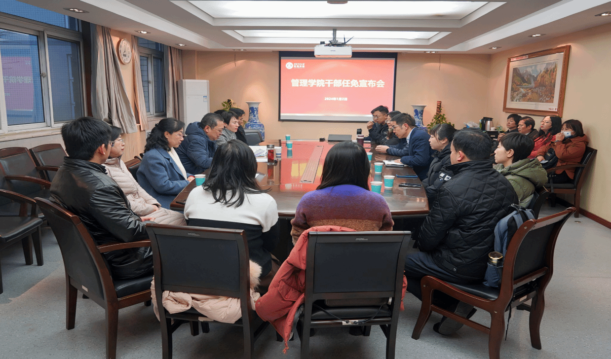 1月2日上午,管理学院召开干部任免宣布会。校党委常委、副校长侯成义出席会议,管理学院党政领导班子成员、支部书记、系主任等参加会议。