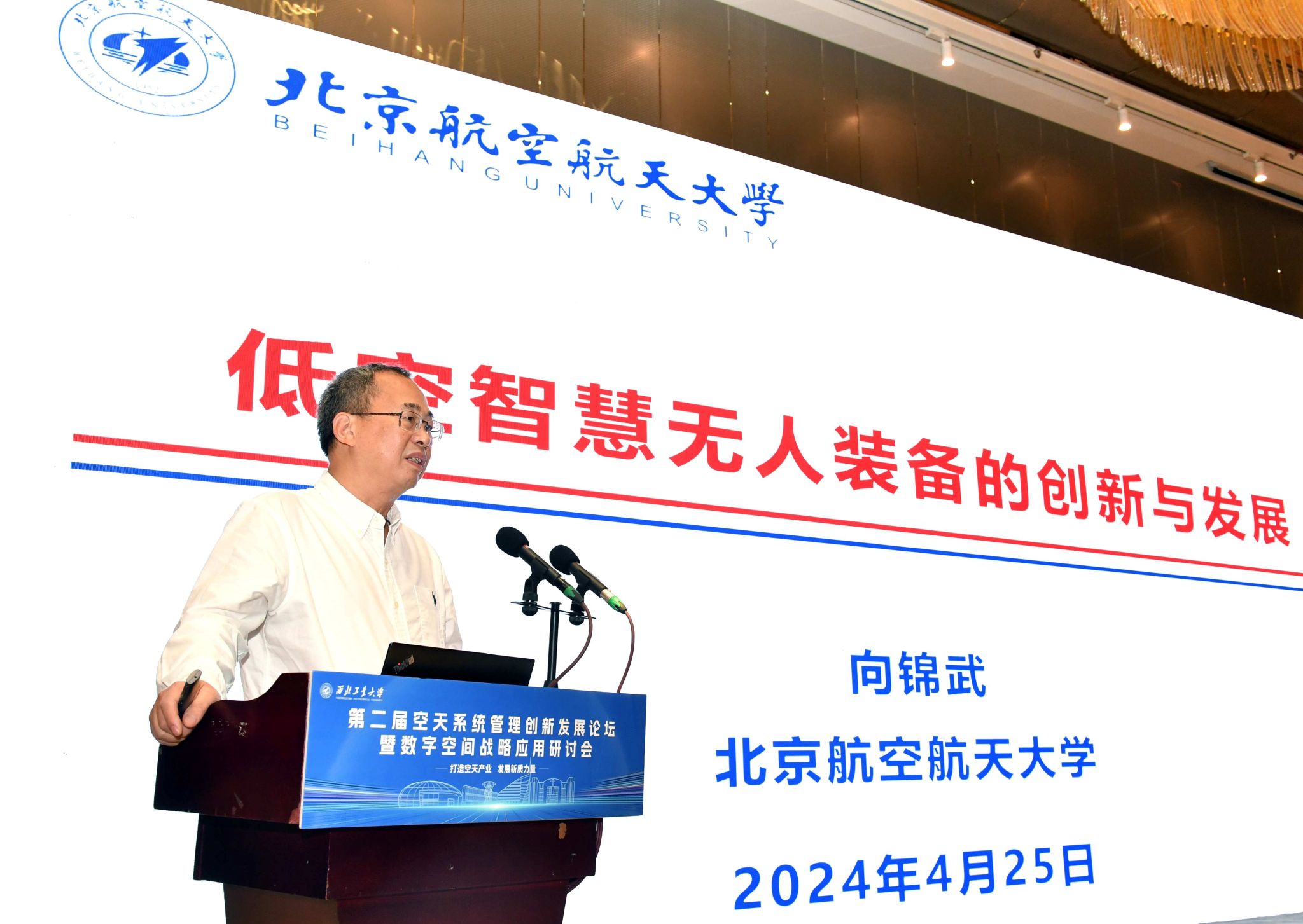 第一场主旨报告是向锦武院士的“低空智慧无人装备的创新与发展”。从低空经济发展态势、关键技术和建议举措三个方面进行了阐述,并指出,国家高度重视发展低空经济,高密度出台了相关的法律法规、产业规划和推广意见,因此要靠解决关键技术和做好顶层规划,政策规范,通过创新驱动,人才培养,激发新质生产力等保障措施去推动低空经济发展。