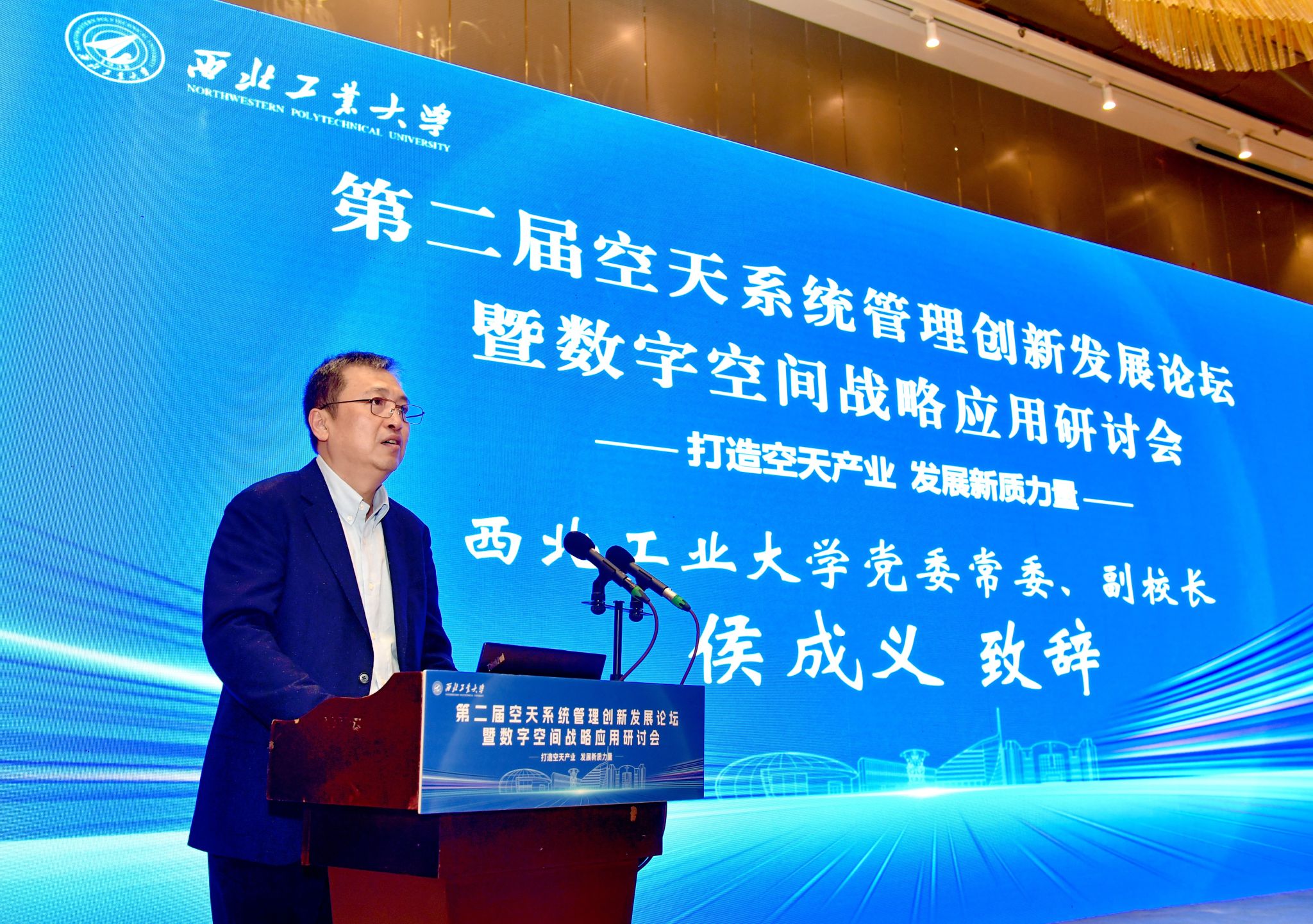 论坛开幕式上,西北工业大学副校长侯成义代表学校致开幕辞,对与会嘉宾表示热烈欢迎。他讲到,西工大认真贯彻落实习近平总书记关于制造强国的重要论述和关于加快发展新质生产力的重要指示精神,抓住发展科技第一生产力、培养人才第一资源、增强创新第一动力的重要结合点,持续巩固“国防、三航、系统”的科研特色,发扬“总师育人文化”的人才培养特色,激发科技创新活力,将高校科技创新优势不断转化为新质生产力。