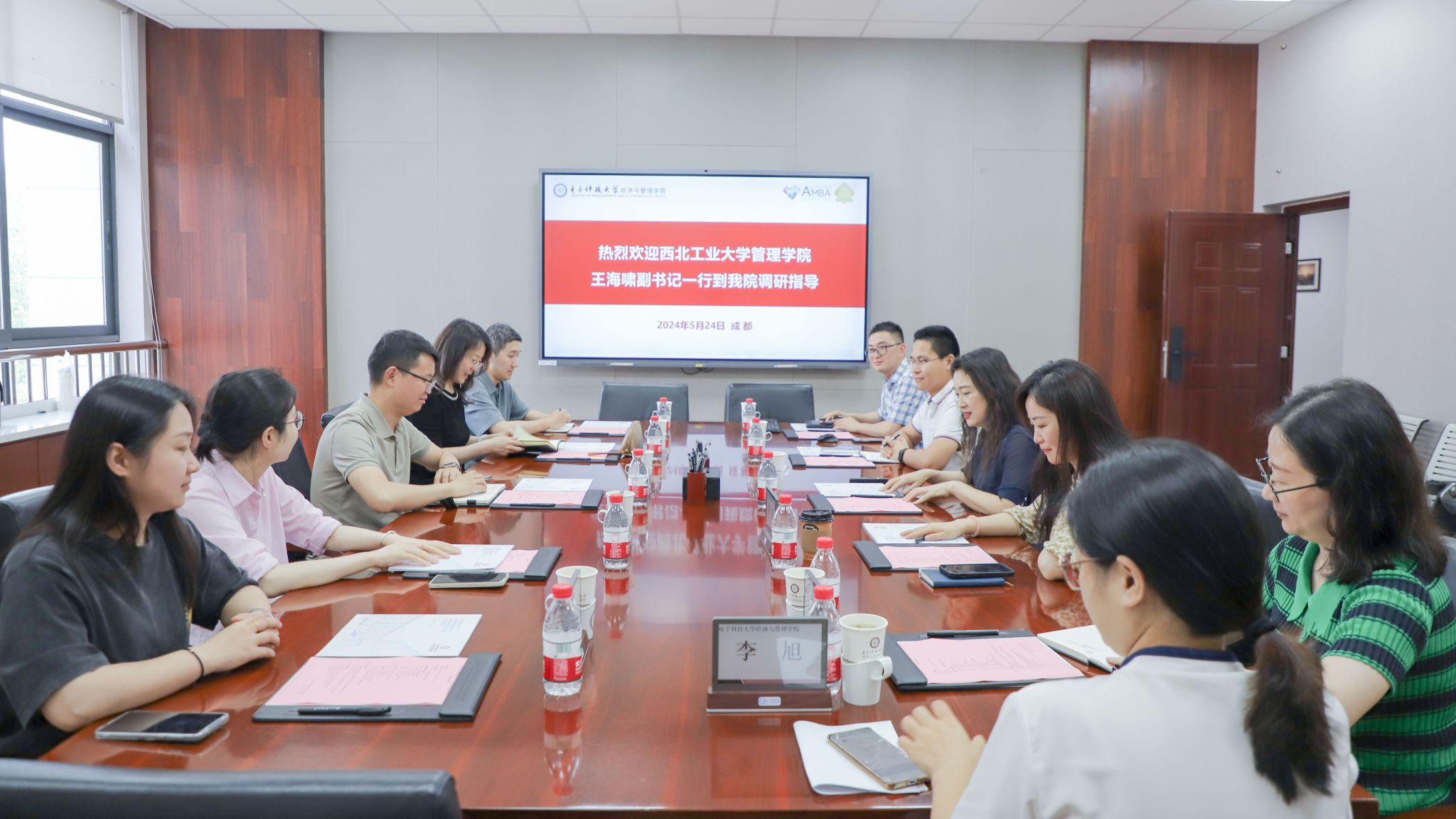 在电子科技大学经济与管理学院,党委书记李钰、副书记潘杨热烈欢迎王海啸一行到访,学生科科长黄善明、人事人才办公室主任刘蕊、学院办公室主任刘军、MBA教育中心学生事务管理李旭参加了座谈会。李钰全面介绍了电子科技大学经济与管理学院的发展情况,潘杨重点介绍了学生工作的典型做法和成效。双方围绕基层党组织建设、人才引进与考核、学生党建、创新创业教育、学生出国深造等方面进行了深入交流,取得了良好的效果。