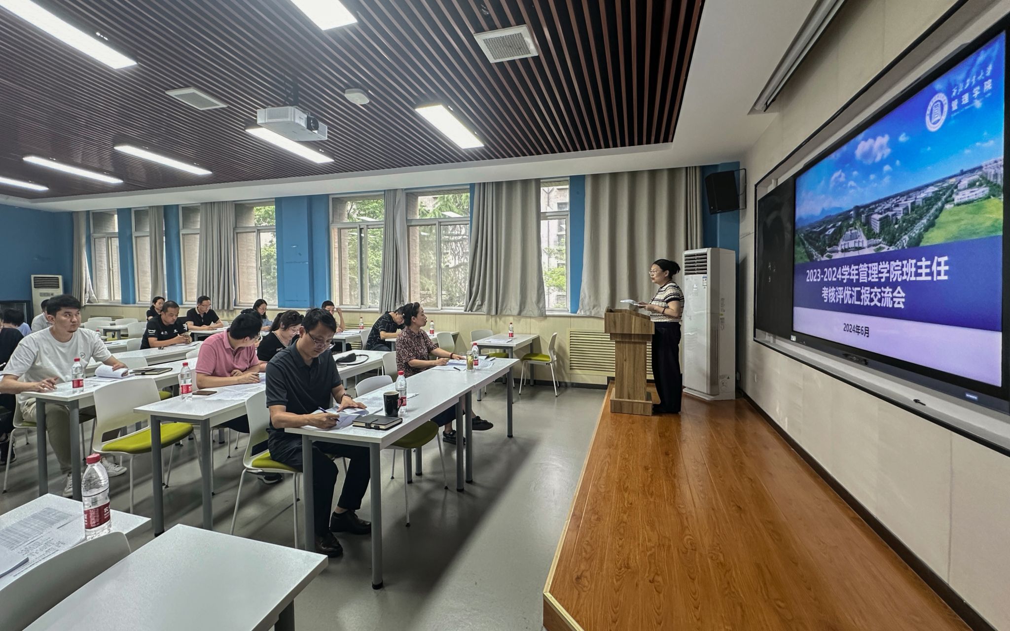 为进一步提升班主任的专业素养和业务能力,推动班主任队伍的建设与发展,根据学校《关于开展2023-2024学年班主任考核工作的通知》精神,6月13日下午,管理学院举行2023-2024学年班主任考核评优汇报交流会,学院党委书记张爽、副书记王海啸、院长助理白洁、各院系教师代表、全体辅导员以及全体本科生班主任参加会议。