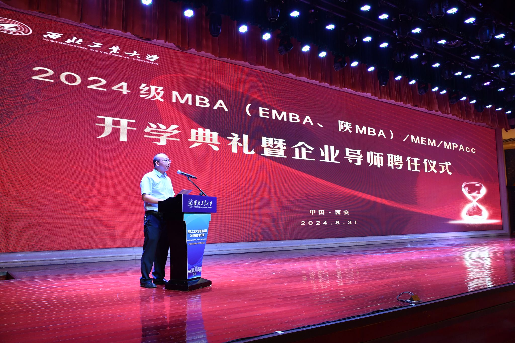 8月31日晚,管理学院2024级MBA(EMBA、含陕MBA)/MEM/MPAcc开学典礼暨企业导师聘任仪式在大唐西市“金色大厅”隆重举行。管理学院院长车阿大、党委书记张爽、校友代表西安源创航空科技有限公司总经理任金伟、学院老师、企业导师代表与2024级新生参加活动。仪式由副院长郭云涛主持。