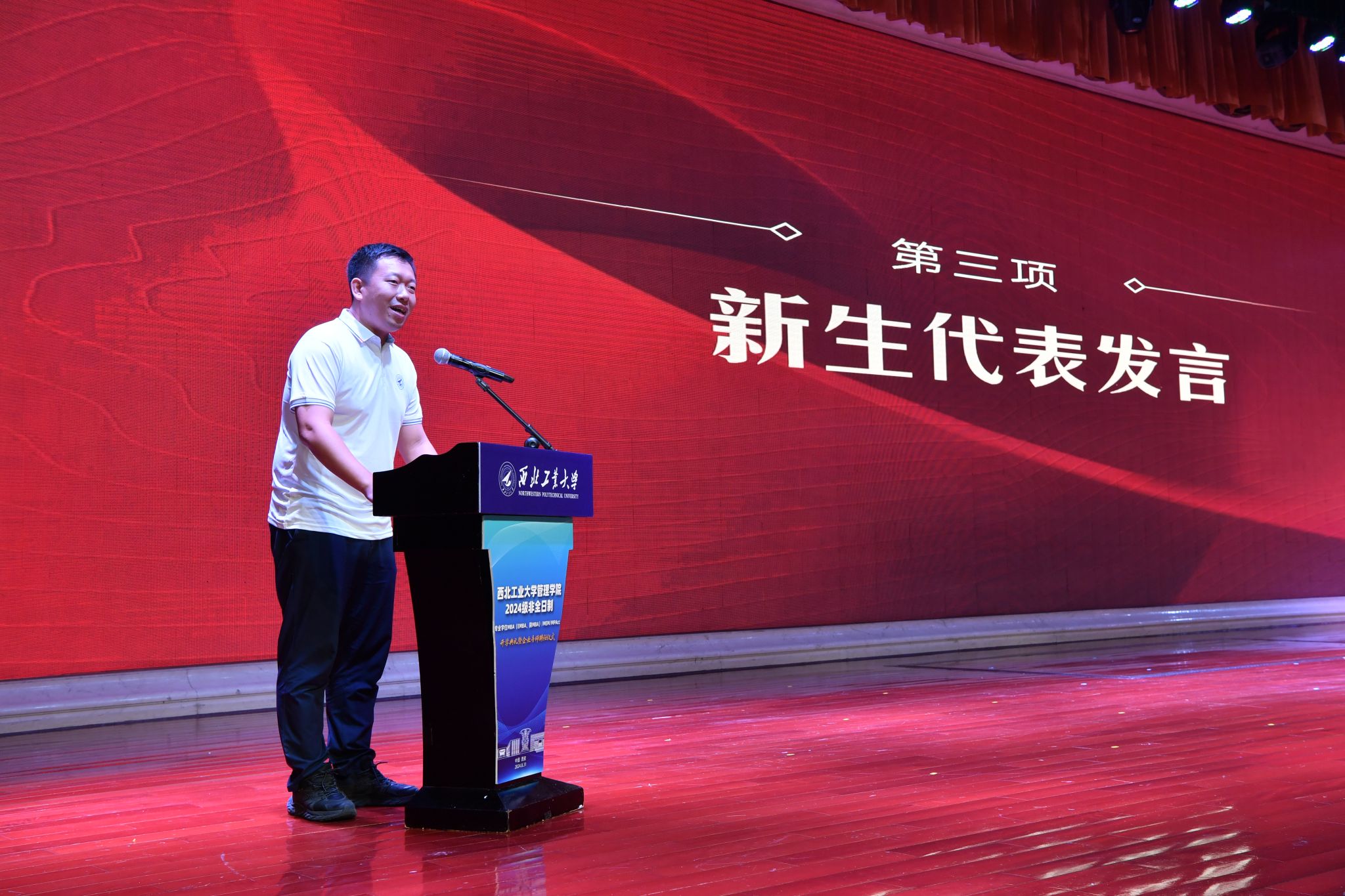 2024级MEM新生代表中国空空导弹研究院李大洋同学表示,他作为一名航空人,也是一名“铸剑人”,很多领导、同事、同行都毕业于西北工业大学这所“总师摇篮”。从他们身上,见识了西工大人“为国铸剑,隐姓埋名”的胸怀与气度。如今自己也成为西工大人,将和同学们一起常修常炼、常悟常进,勇做新时代的奋进者、开拓者、奉献者。