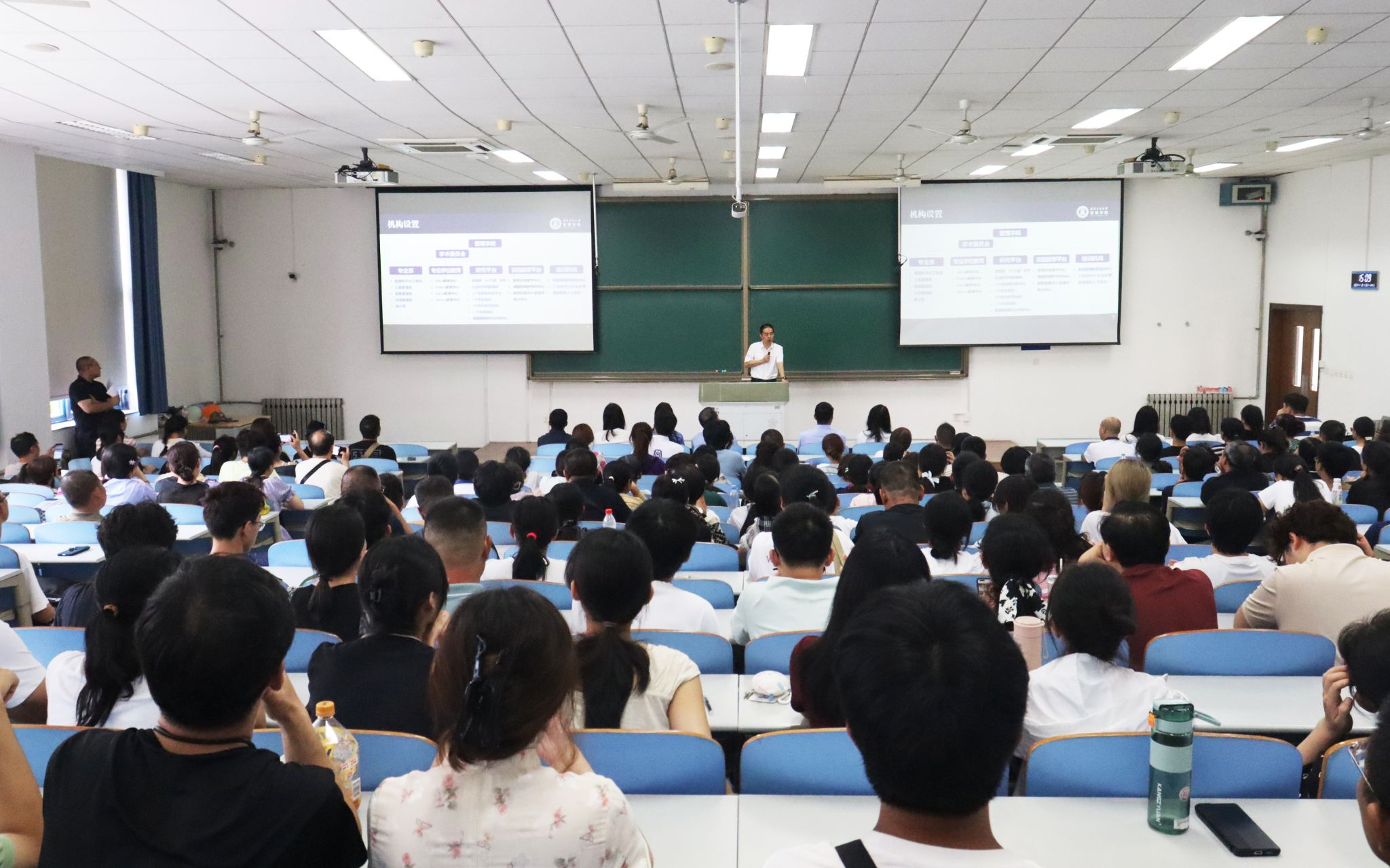 8月30日下午,管理学院在长安校区举行本科新生家长见面会,院长车阿大、党委副书记王海啸、六级职员白洁,全体新生班主任、辅导员、教学秘书、外事秘书,以及2024级本科生和家长近260人参加了见面会。车阿大详细介绍了学院的发展历程,着重强调了敬业、务实、开放、创新的学院价值观和本科生人才培养理念,并系统介绍了学院的学科专业、科学研究、师资队伍。王海啸介绍了学院学生工作和本科教学工作的具体情况,五位新生班主任依次向新生和家长们做了自我介绍,为新生们送上了殷切的期望与祝福。此次新生家长见面会为家长们提供了一个深入了解管理学院的机会,为后续深化家校协同育人打下了良好基础。