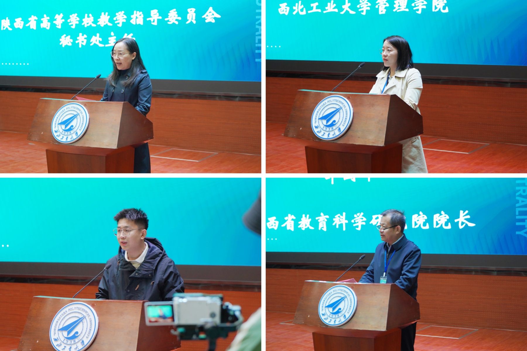 上午9:00,大赛开幕式隆重举行,西北工业大学管理学院副院长贾明教授主持开幕式。西北工业大学教务部副部长张学良代表学校对各位专家学者以及参赛同学表示热烈的欢迎,并对本次大赛提出了殷切期望。陕西省高等学校教学指导委员会秘书长王贵荣,陕西省教育科学研究院副院长惠均芳等领导作为嘉宾为本次大赛致辞。裁判长金美容老师、教师代表黄珍老师、参赛学生代表廖家豪同学依次上台宣誓。陕西省教育科学研究院院长邵国希宣布本次大赛正式开幕。