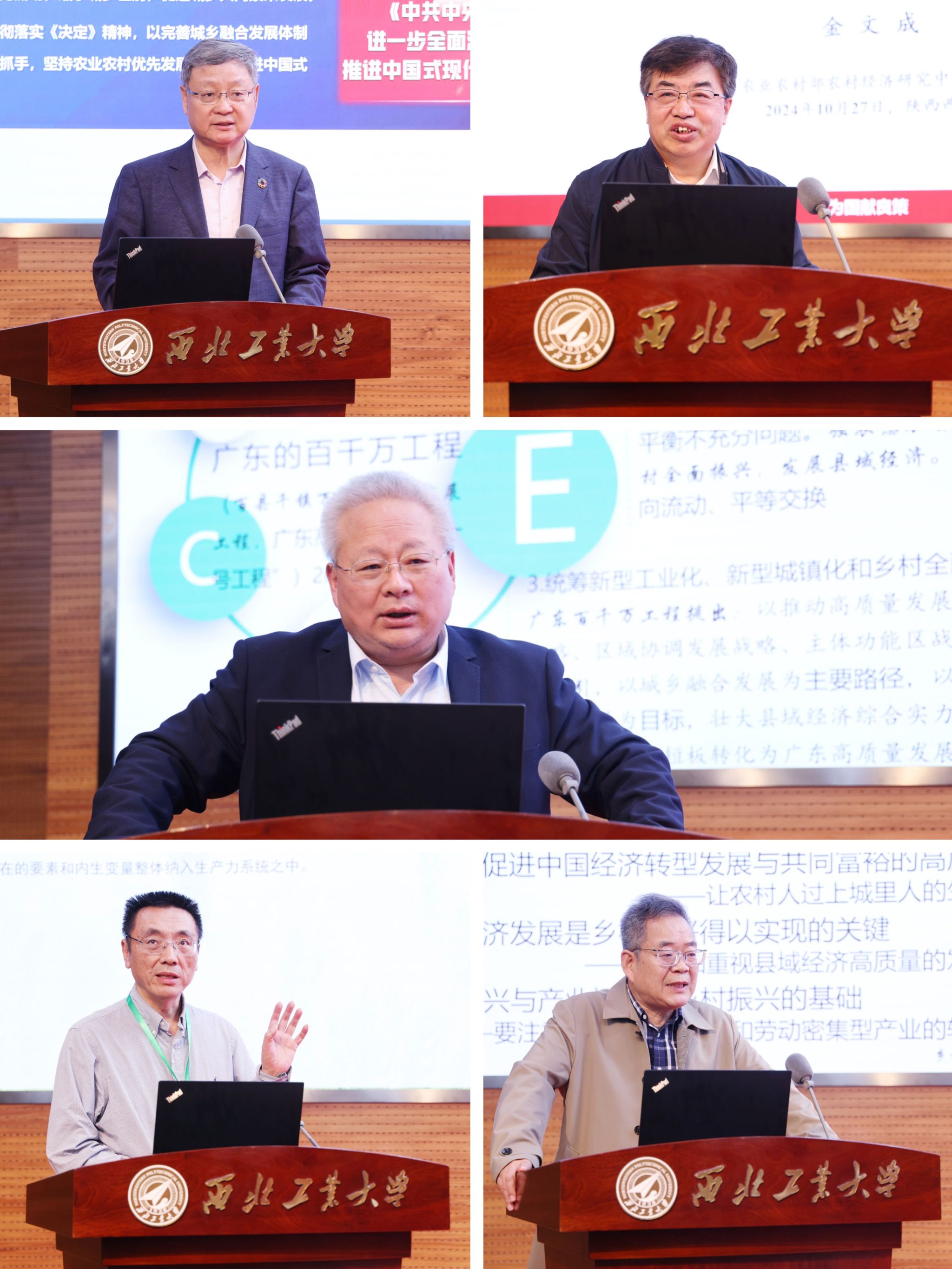 27日上午的特邀嘉宾报告环节上半场由西北工业大学研究生院常务副院长朱继宏主持,下半场由西北工业大学马克思主义学院院长杨云霞主持。中国农业风险管理研究会会长张红宇作了题为《推进乡村全面振兴:形势与任务》的主旨报告,从把握发展形势、聚焦重点任务和强化保障举措三个维度,深入剖析了乡村全面振兴面临的现状、挑战与未来发展方向。农业农村部农村经济研究中心主任金文成以《巩固和完善农村基本经营制度》为题,系统阐述了农村基本经营制度是怎么来的、为什么要毫不动摇坚持农村基本经营制度以及怎样巩固和完善农村基本经营制度的问题。中国宏观经济研究院高级顾问专家姜长云在其报告《县域经济高质量发展的含义和推进策略》中,深入探讨了县域经济高质量发展的核心内涵及相应的政策推进策略,并提出了一系列切实可行的推进策略。四川大学马克思主义学院院长蒋永穆进行了题为《加快发展农业新质生产力》的报告,介绍了什么是农业新质生产力以及其在助推乡村生态产品价值实现方面发挥的关键作用。西北工业大学管理学院教授白思俊围绕《乡村振兴之关键要素-县域经济、产业振兴与人才振兴》进行了报告分享,探讨了县域经济、产业振兴与人才振兴之间的相互关系,强调了三者协同发展的重要性,以推动乡村振兴战略的有效实施。