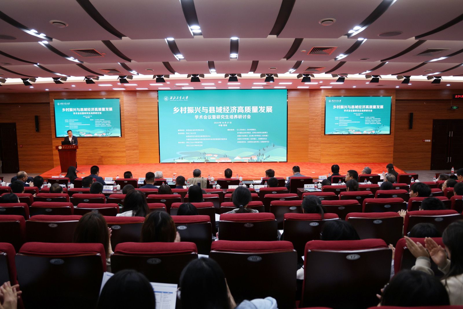 2024年10月27日,首届乡村振兴与县域经济高质量发展学术会议暨研究生培养研讨会在西北工业大学友谊校区隆重召开。会议着眼未来,旨在交流探讨当代乡村振兴与县域经济高质量发展遇到的现实挑战和相关实践问题,探索乡村振兴与县域经济高质量发展的新路径与新模式,为未来政策发展提出改革方向,共同推动县域经济高质量发展不断向前超越。来自国内知名高校、科研机构和重要核心期刊单位的200多名专家、学者和学校师生代表参加会议。