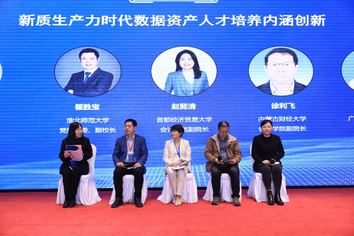 主题报告结束后,大会举行了主题为“新质生产力时代数据资产人才培养内涵创新”的圆桌论坛。论坛由陈琳教授主持,淮北师范大学党委常委、副校长翟胜宝教授、首都经济贸易大学会计学院赵懿清副院长、内蒙古财经大学会计学院副院长徐利飞教授、广东外语外贸大学王艳教授应邀参加论坛。各位专家围绕新质生产力的基本内涵和内在要求,结合数据资产发展趋势和特征属性,分享了各学校在相关学科建设、专业人才培养等方面的实践经验,论坛氛围开放热烈,内容充实而富有洞见,为各位参会人员在今后的教学科研工作中提供了极富价值的经验借鉴。