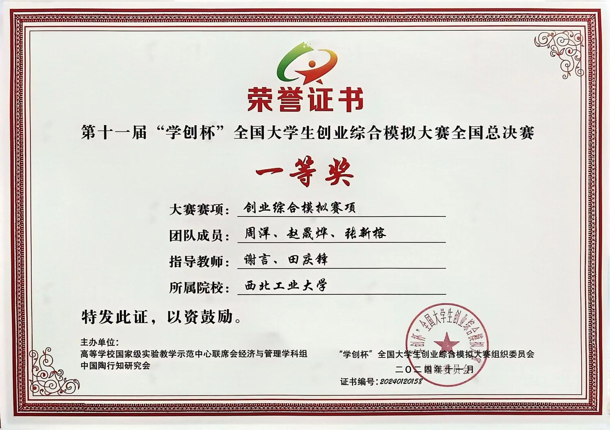该赛事从2024年3月正式启动,校内选拔赛由西北工业大学企业经营与创业模拟创新实践基地承办,共有16支队伍报名参赛。经过校内选拔、陕西省赛及全国预选赛的层层选拔,历时8个月,在谢言副教授、田庆锋教授的指导下,在周珍副教授、邓巍副教授的支持下,西北工业大学管理学院本科生周洋、赵晟烨、张新榕组成的参赛团队,凭借优异表现成功晋级全国总决赛,最终荣获全国一等奖。