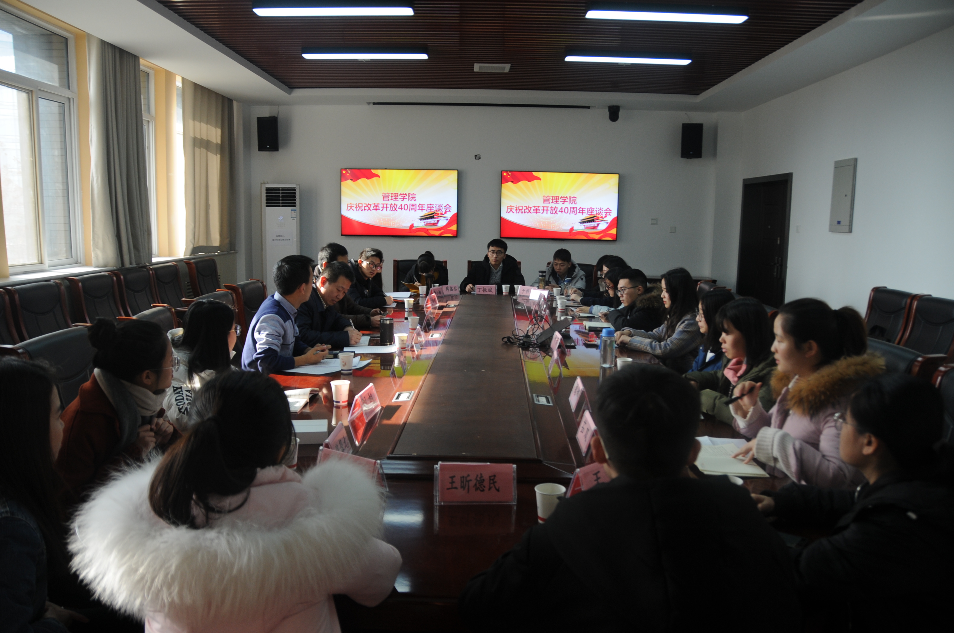 为庆祝改革开放40周年,12月18日上午,管理学院组织全体学生党员在长安校区管理学院210和212观看了庆祝改革开放40周年大会直播。下午,在长安校区管理学院212会议室,召开了庆祝改革开放40周年学生党员代表座谈会。管理学院党委书记李小聪,副书记曹子尧,辅导员赵勇,管理学院学生党员代表参加了座谈会。会议由赵勇主持。