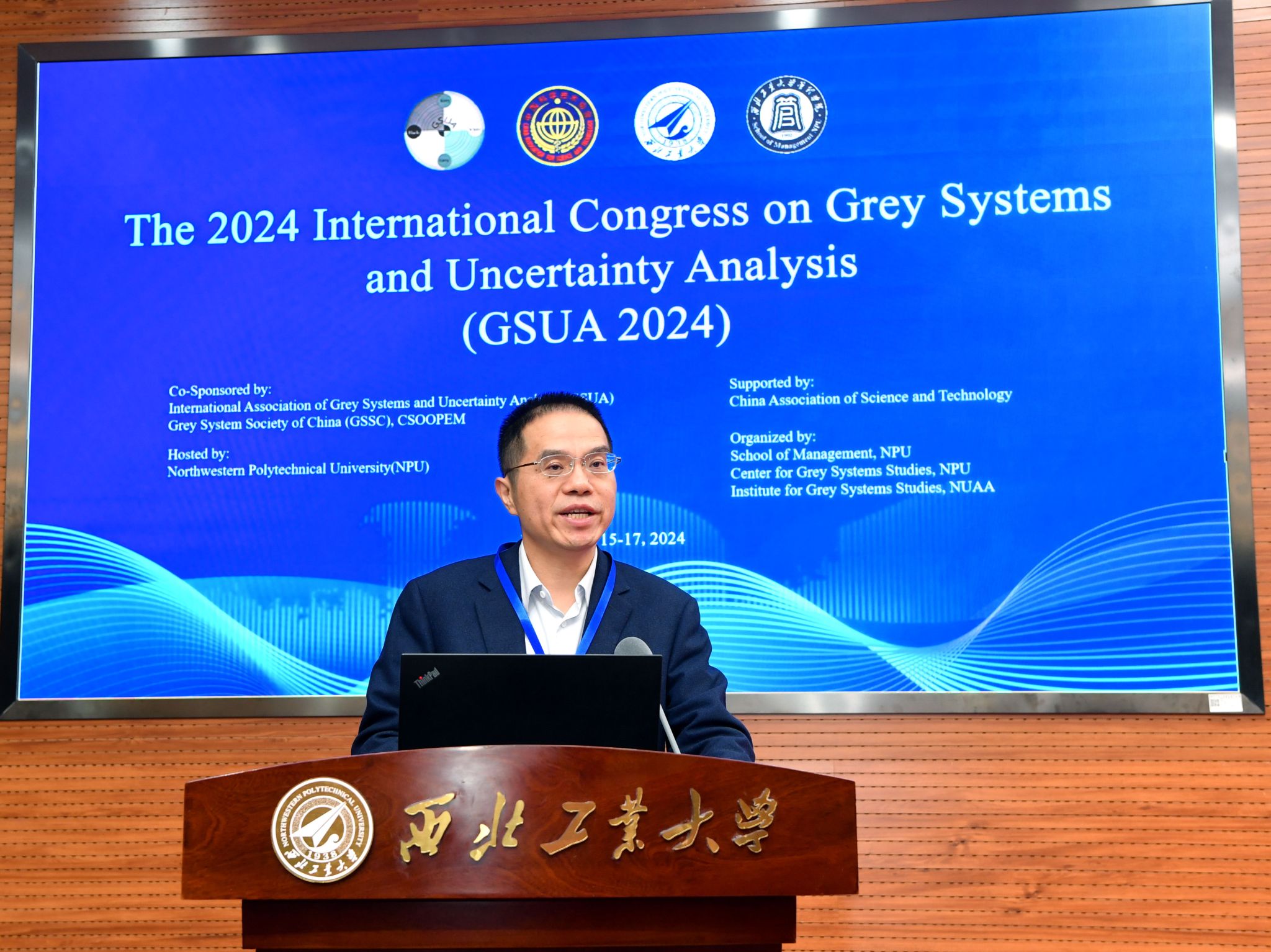 11月15-18日,2024灰色系统与不确定性分析(GSUA)国际会议暨第38届全国灰色系统学术会议在西北工业大学成功举办。会议经灰色系统与不确定性分析国际联合会(GSUA)批准,由中国优选法统筹法与经济数学研究会灰色系统专业委员会和西北工业大学主办,西北工业大学管理学院、灰色系统与三航装备创新发展研究中心和南京航空航天大学灰色系统研究所承办,会议入选中国科协《重要学术会议目录(2024)》。来自中国、法国、美国、意大利、波兰、罗马尼亚、塞尔维亚、巴西、立陶宛、埃及、伊朗、巴基斯坦、斯里兰卡、墨西哥、喀麦隆等国家近300位专家、学者和研究生参加了会议。会议开幕式由灰色系统与不确定性分析国际联合会副主席兼秘书长谢乃明教授主持,管理学院院长车阿大教授和GSUA国际联合会主席刘思峰教授分别致辞。中国工程院院士、中国商飞总设计师、首席科学家吴光辉给我校宋保维校长和大会组委会发来了贺信。