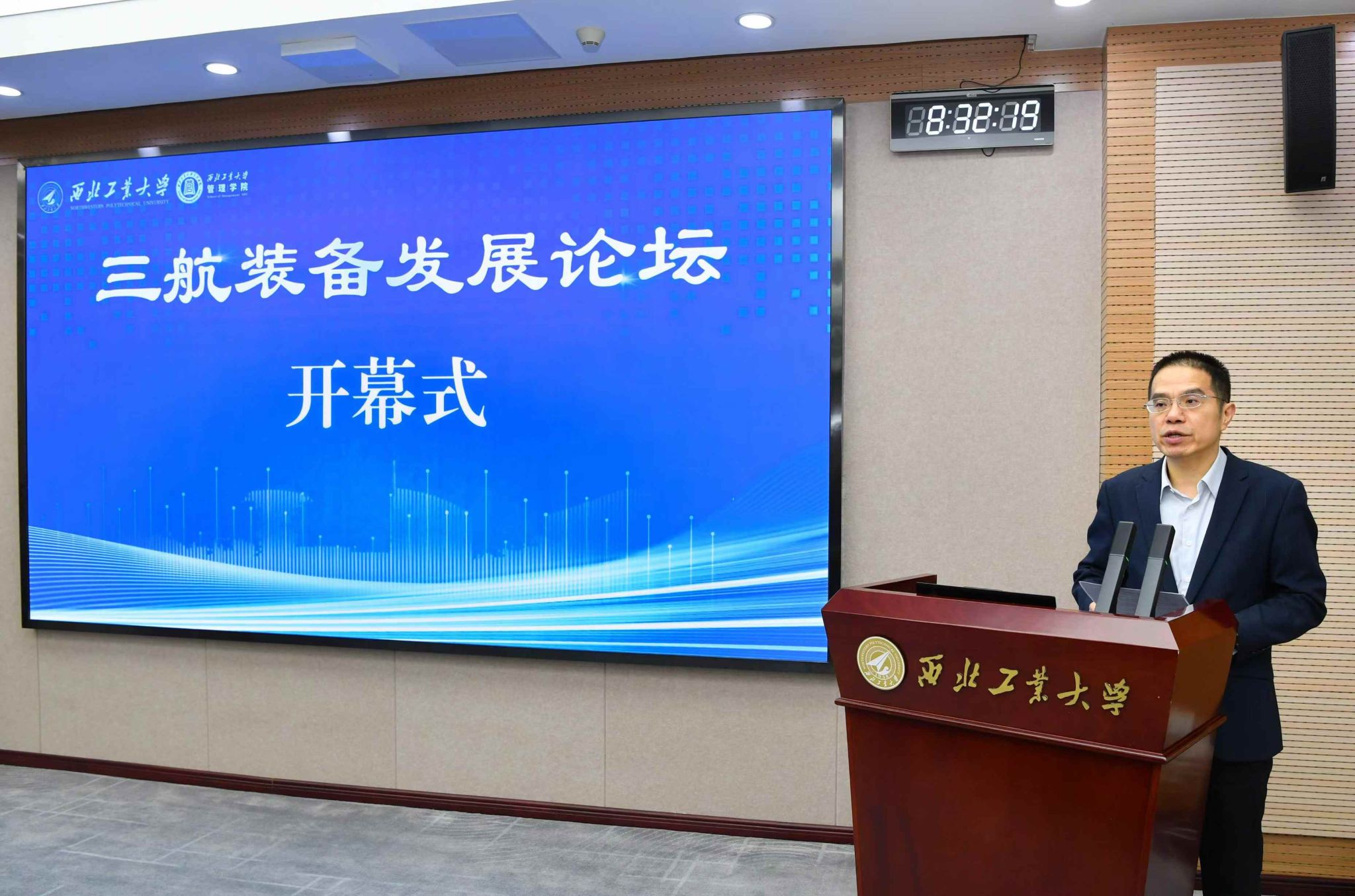 管理学院院长车阿大主持论坛开幕式。侯成义代表学校对与会专家学者表示热烈欢迎。他指出,加强三航重大装备的研制与运维管理不仅是一项战略任务,更是加快建设科技强国、制造强国的关键。本次三航装备发展论坛旨在搭建平台,汇聚相关领域专家学者共同探讨重大装备研制与运维过程中的难点和热点问题,推动我国三航装备的创新发展。他表示,希望借此机会进一步加强学校与专家学者之间的合作交流,为推进我国三航装备事业的发展继续贡献力量。