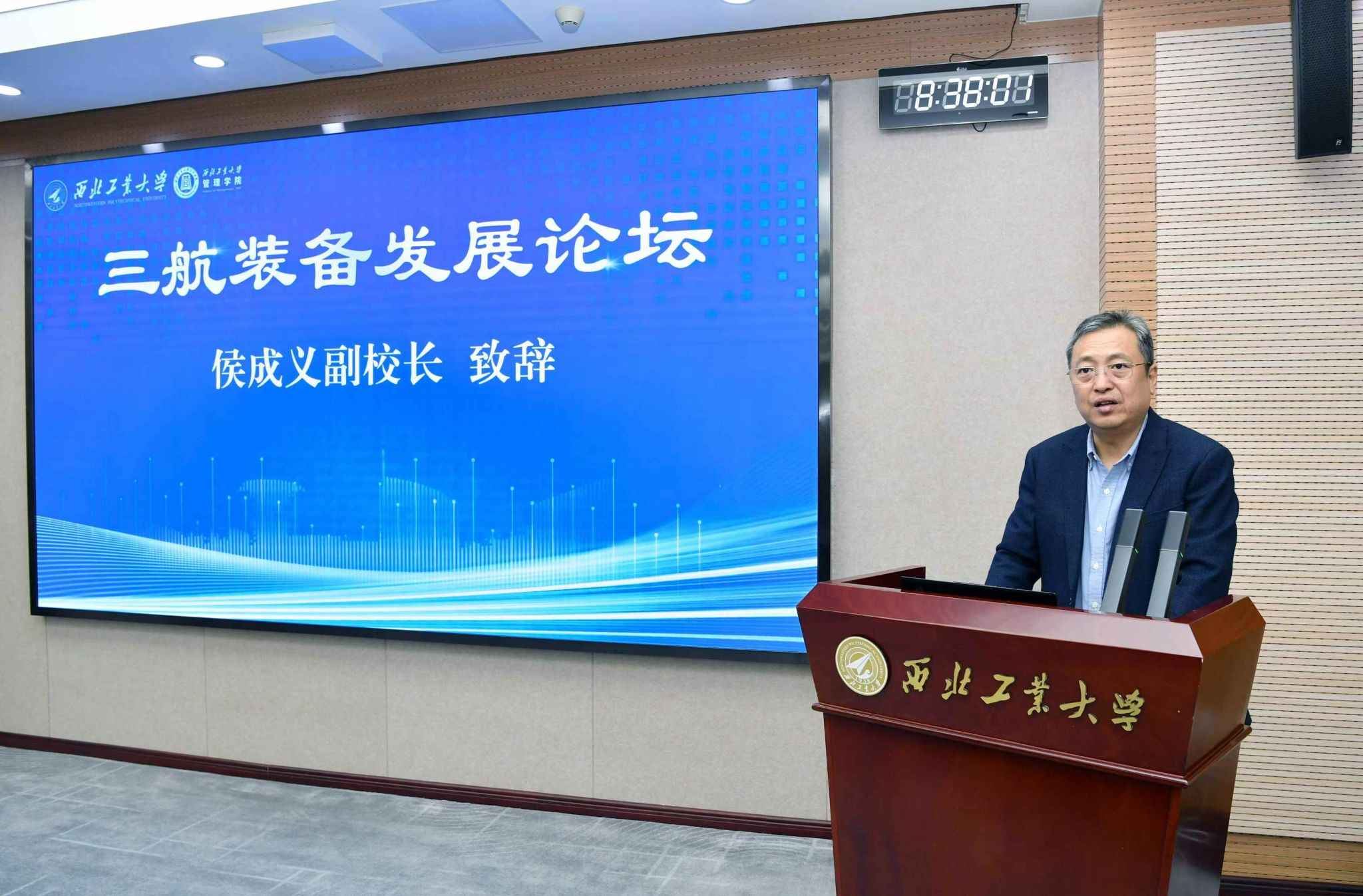 11月17日,三航装备发展论坛在西北工业大学国际会议中心第一会议室召开。论坛由中国优选法统筹法与经济数学研究会复杂装备研制与运维管理专业委员会和西北工业大学联合主办;陕西省军民融合发展协同创新研究中心、陕西省颠覆性技术创新与发展战略研究中心、灰色系统与三航装备创新发展研究中心、陕西省应急管理学会和西北工业大学管理学院共同承办。航天科技集团总部、一院、六院、八院、九院和中国科学院声学研究所等科研院所代表,中国电子信息产业集团有限公司、中船海洋与防务装备股份有限公司、中国船舶集团公司等企业代表,以及北京航空航天大学、北京理工大学、西北工业大学、中南大学、南京航空航天大学等高校代表共计80余人参加了本次论坛。西北工业大学副校长侯成义参加论坛开幕式并致辞。