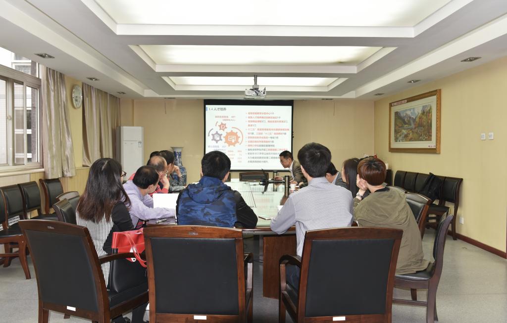 车阿大首先从学院概况、学院当前存在的问题、建设思路与目标、建设举措等四个方面将学院的情况进行了汇报。他指出当前学院工作存在学科发展水平不均匀、人才培养质量不够高、师资队伍建设有待加强等问题,针对这些现存问题明确了发展的短期目标和长期目标,从学科发展方向、师资队伍建设、人才培养、科学研究、社会服务等方面提出详细的建设举措。