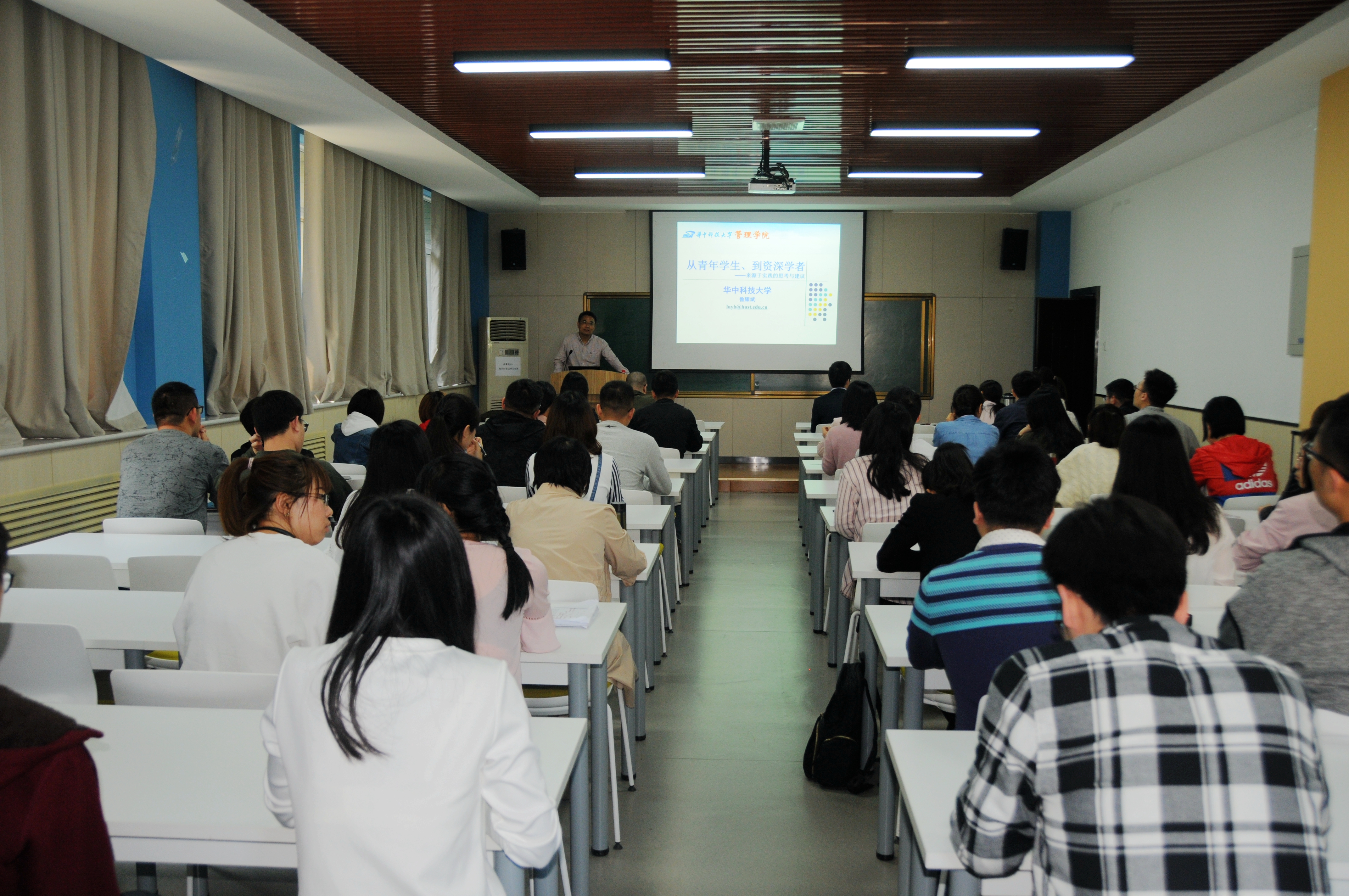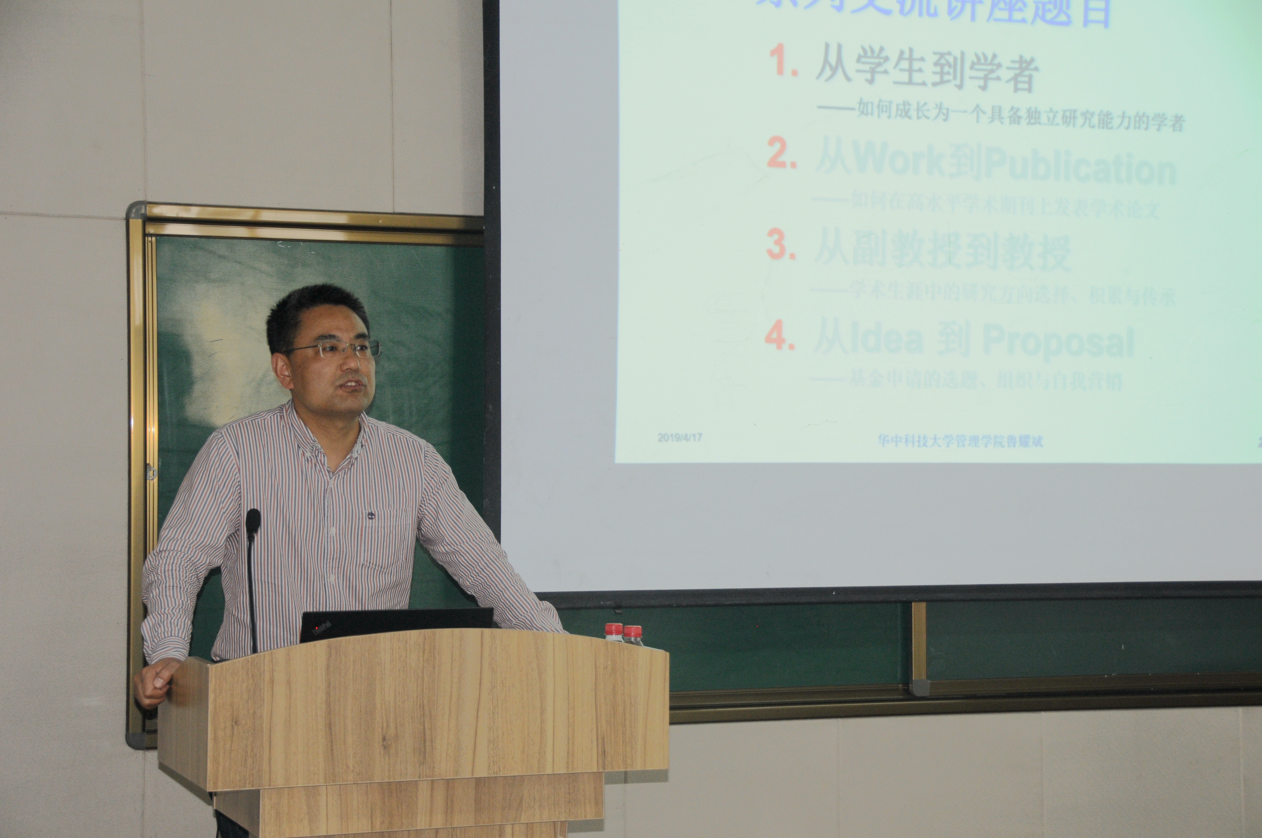 4月17日下午,华中科技大学管理学院的鲁耀斌教授应邀在210报告厅为我院师生做了题为“从学生到学者——如何成长为一个具备独立研究能力的学者”的学术报告。在我院副院长贾明教授的主持以及鲁耀斌教授的精彩演讲下,此次学术报告会得到与会的我院青年教师和博士及硕士研究生的一致好评,取得圆满成功。