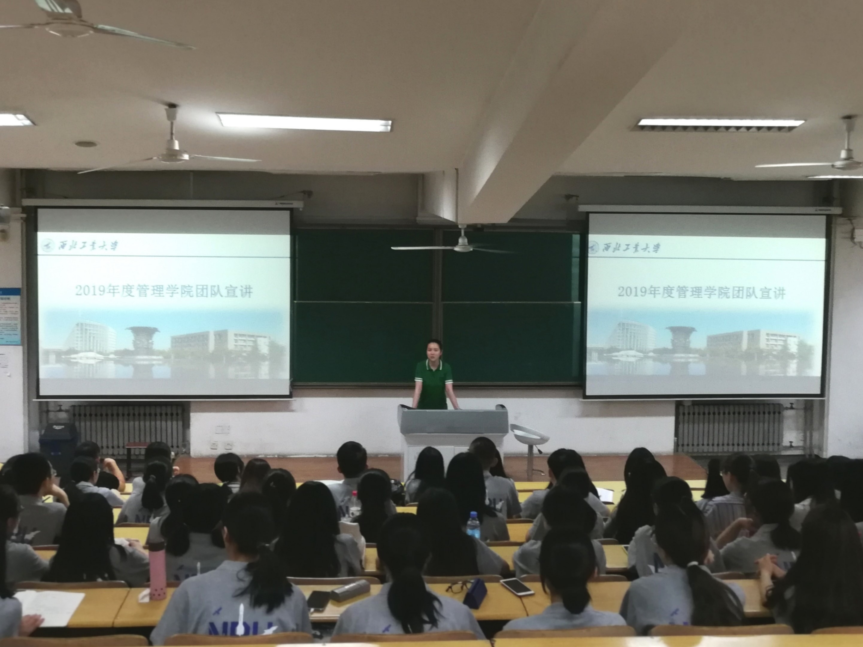 校史馆参观结束后,管理学院研究生辅导员薛力老师在管理学院210报告厅对我院各方面情况做了介绍,并回答同学们的问题。