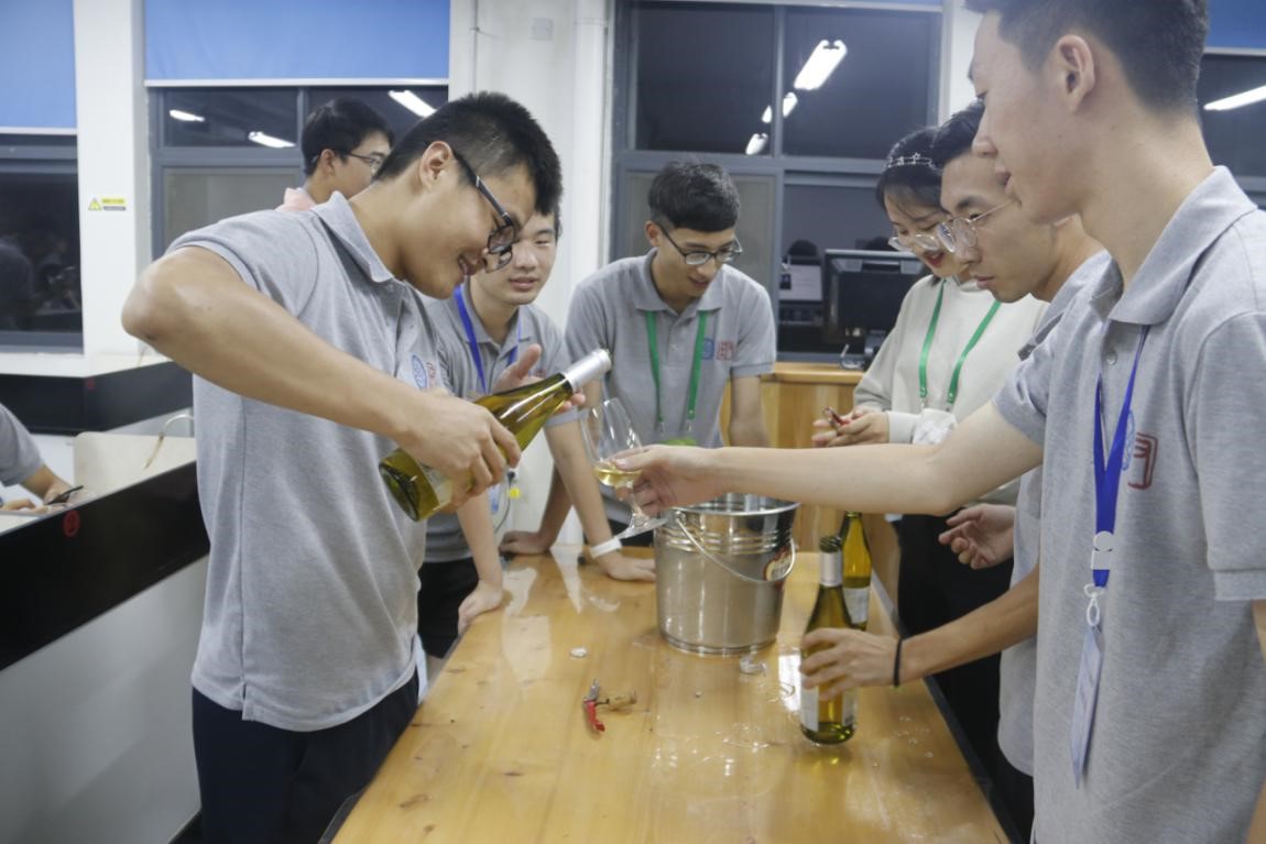 葡萄酒鉴赏。老师为营员们讲解了葡萄酒的历史、品种、产地以及如何从颜色、口感、味道品鉴葡萄酒之后,同学们趣味盎然地品鉴了各色葡萄酒。