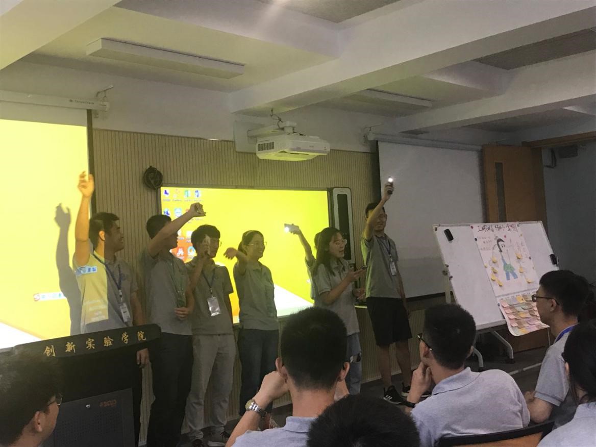 结业汇报。两个班十个小组的汇报展示形式多样、精彩纷呈。汇报展示涉及领导力、沟通、团队协作等主题。根据小组现场表现,通过组间互评和组内互评分别选出了两个优秀团队和十名优秀学员。一个优秀小组,通过对话聊天的形式,生动展示了小组在整个训练营期间的收获;另一个优秀小组,以视频形式回顾了五天的训练营生活,歌曲表演更把汇报展示氛围推向了高潮。