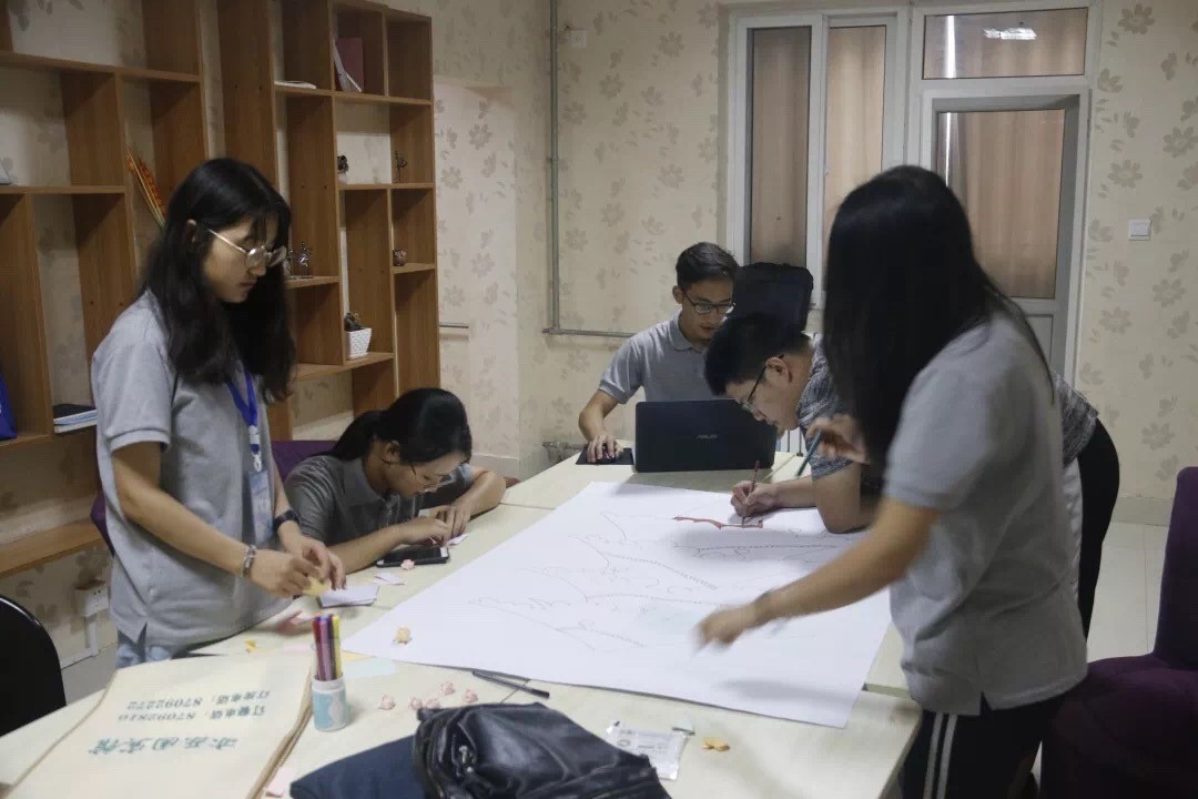 小组反刍。每个小组总结了营训的收获和感受,同学们献计献策,制作汇报挂图,设计汇报内容和情节,体现了友好合作和勇于创新的精神风貌。