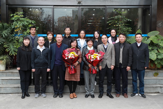 车阿大代表学院为两位荣休老师颁发了管理学院荣休证书,李小聪赠送了学院荣休纪念品,办公室工作人员为荣休老师献上了鲜花。