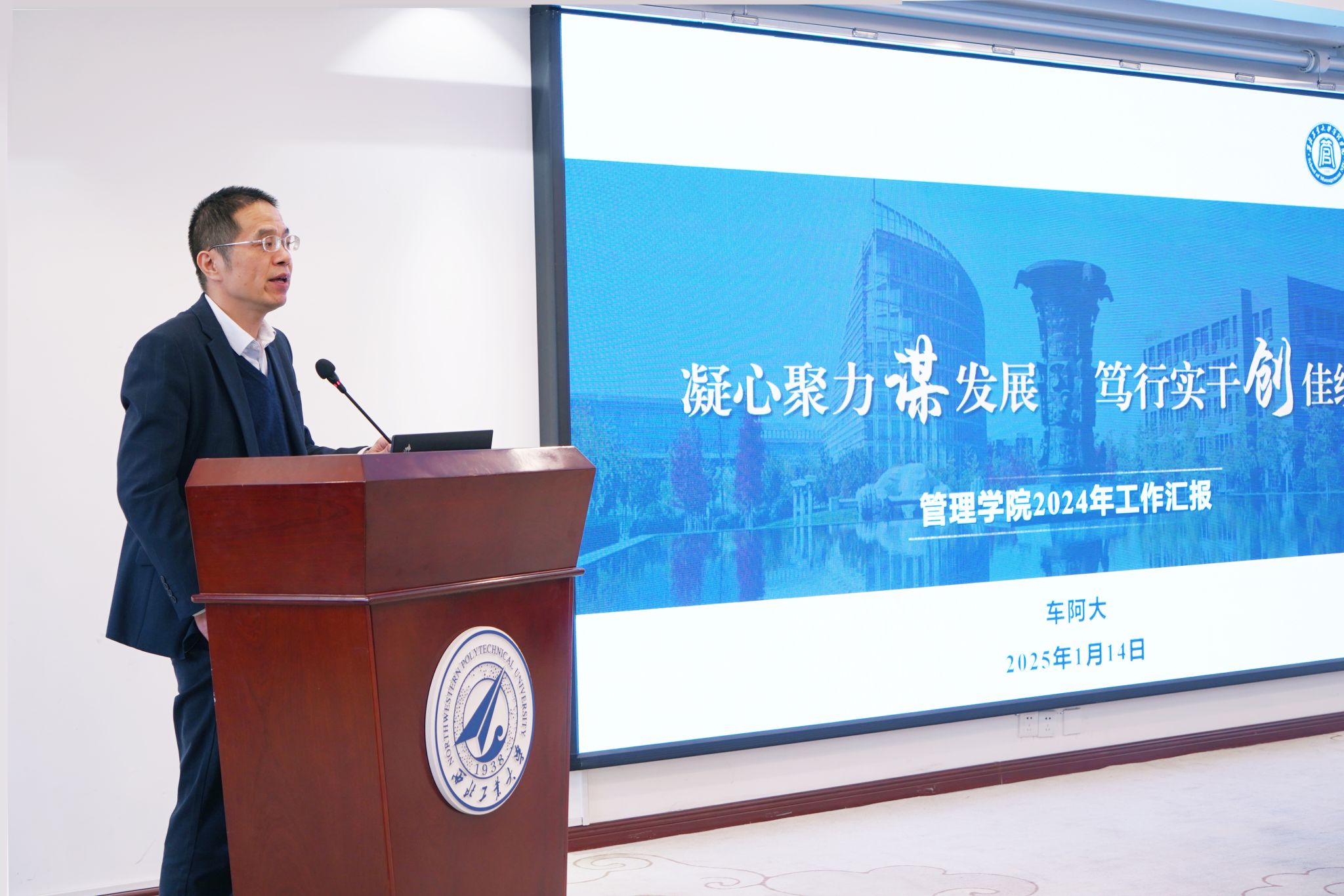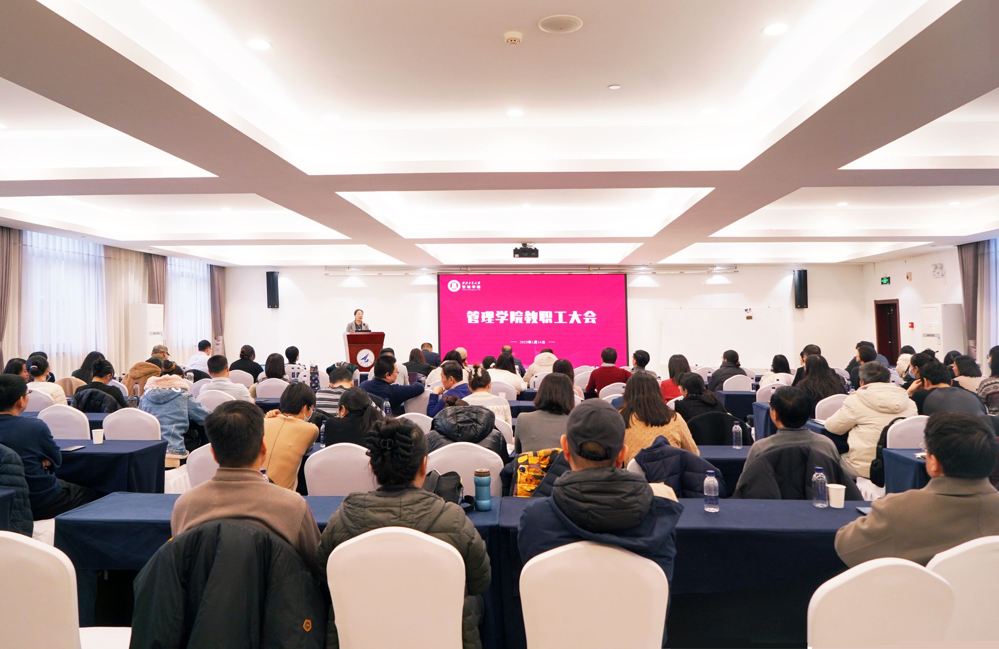 旧岁已展千重锦,新年再进百尺竿。2025年1月14日下午,管理学院召开2024年度教代会暨全院教职工大会,表彰有突出贡献的师生、总结2024年工作成果、规划2025年重点工作。全院教职工参会,会议分别由学院工会主席蔡建峰、党委书记张爽主持。