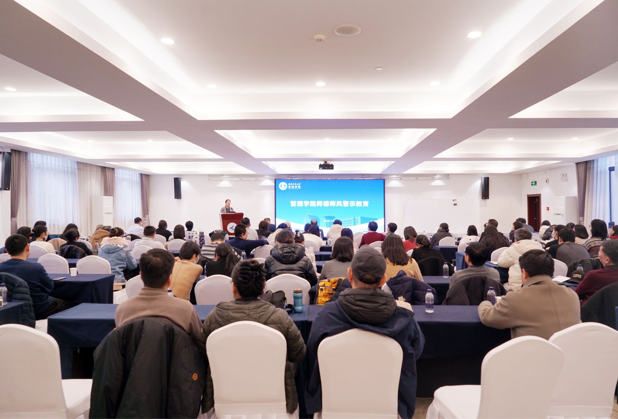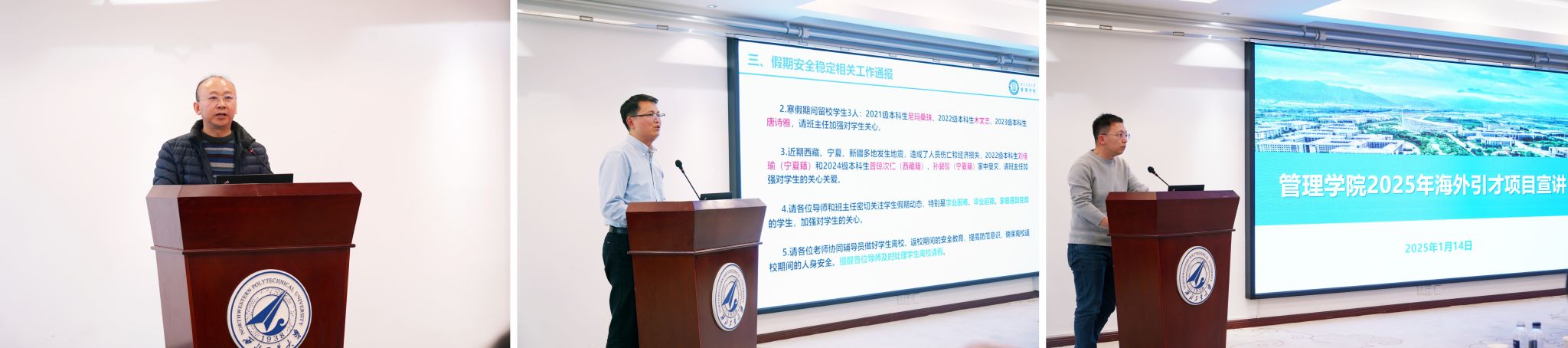 教职工大会上,副院长郭云涛通报专业学位课程、论文复试等培养的相关事宜。党委副书记王海啸通报学生就业情况、“三大赛”校赛备赛情况和寒假期间安全稳定相关工作。院长助理李乘龙对2025年海外引才项目进行宣讲动员。