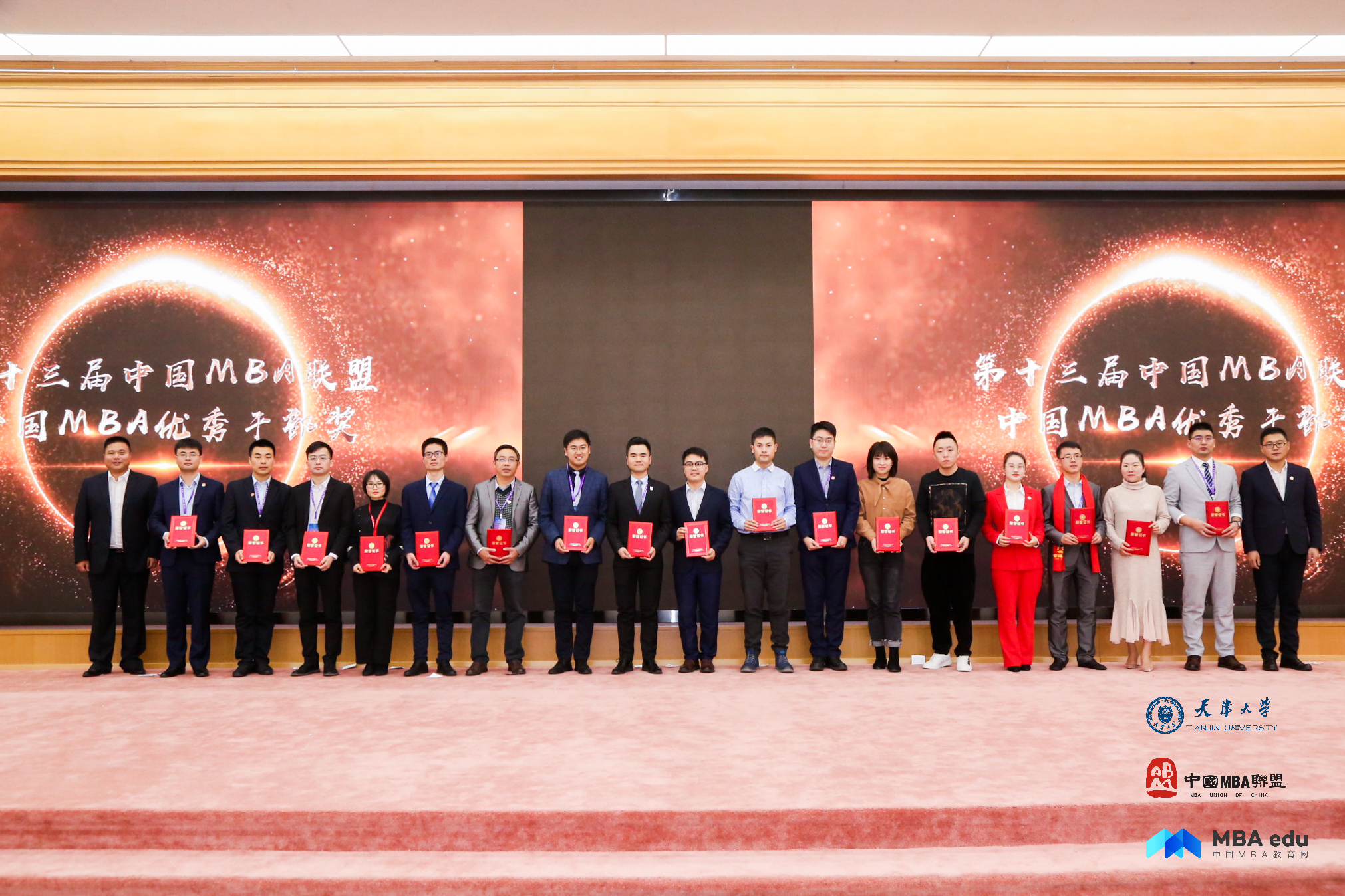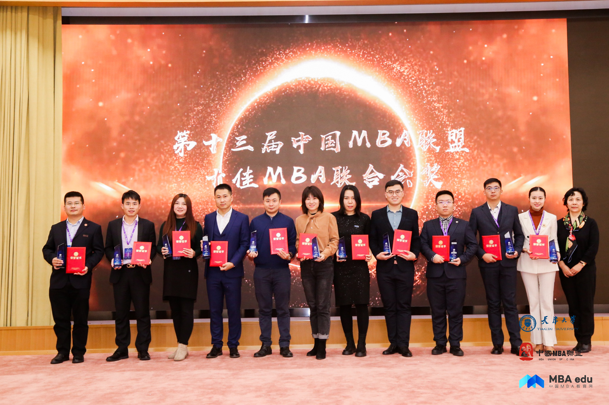 在8日举行的颁奖典礼上,我校联合会喜获“2019中国MBA十佳MBA联合会”及“第二届中国MBA文化艺术节—校园风采影视大赛”季军,学员王琦、季娜获“2019中国MBA优秀干部奖”,赵治华、王通获“2019中国MBA新锐100奖”。