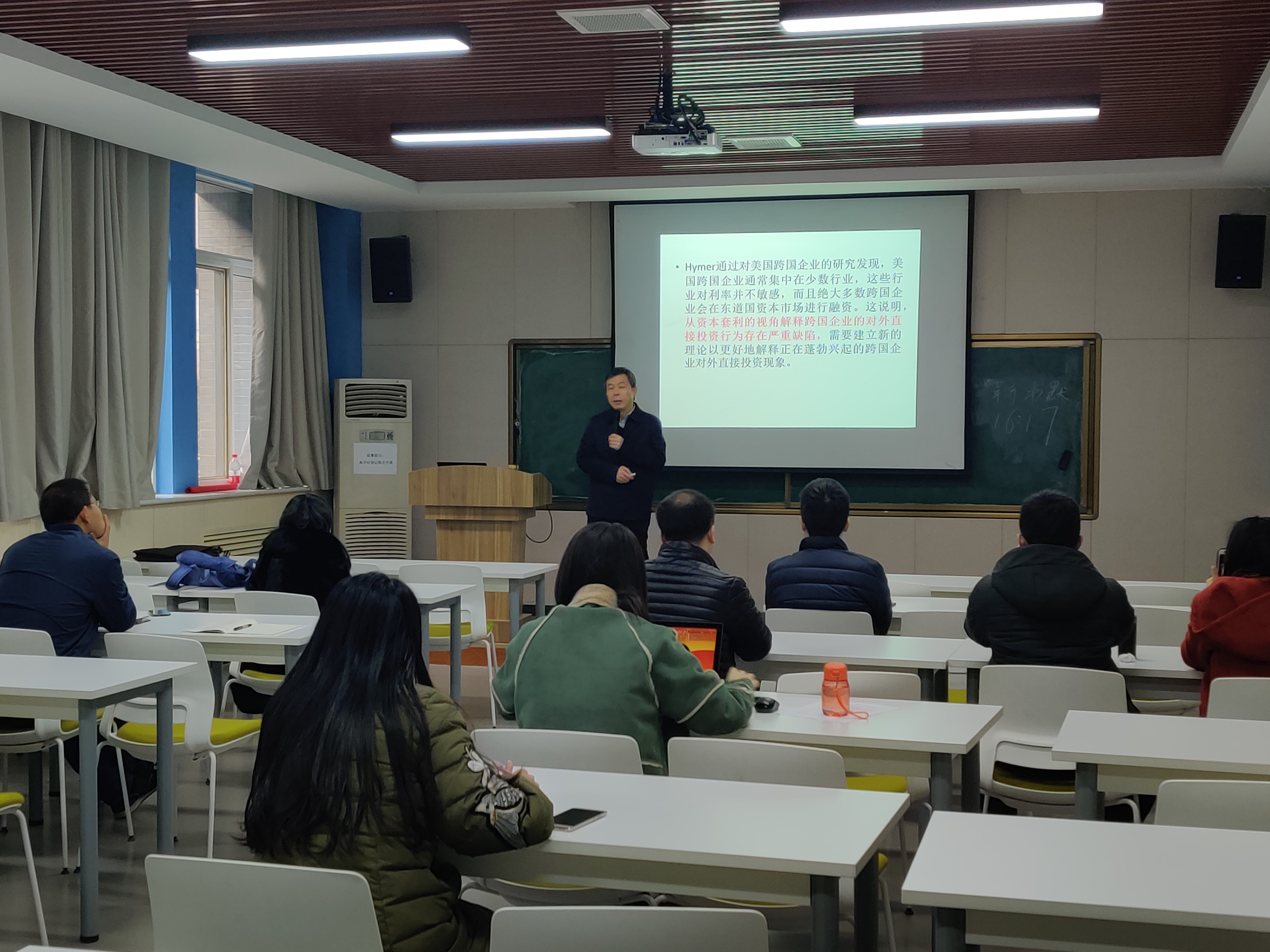 2019年12月30日上午,武汉大学吴先明教授应邀来我院作题为“跨国企业研究的基本理论与主要议题”的学术报告。本次报告由贾明教授主持,我院部分师生参加了此次报告会。