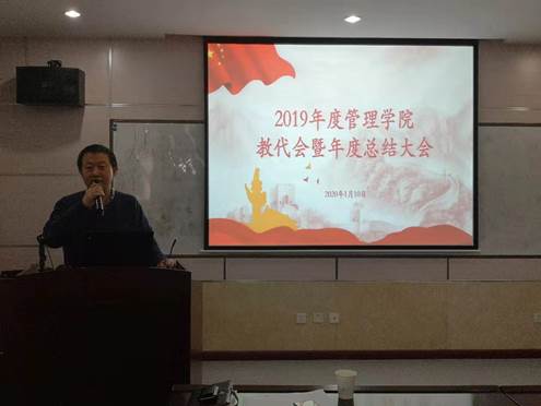 2020年1月10日下午,管理学院2019年教代会暨年度总结大会在友谊校区602会议室举行。会议由学院工会主席蔡建峰老师主持,学院全体教职工参加。