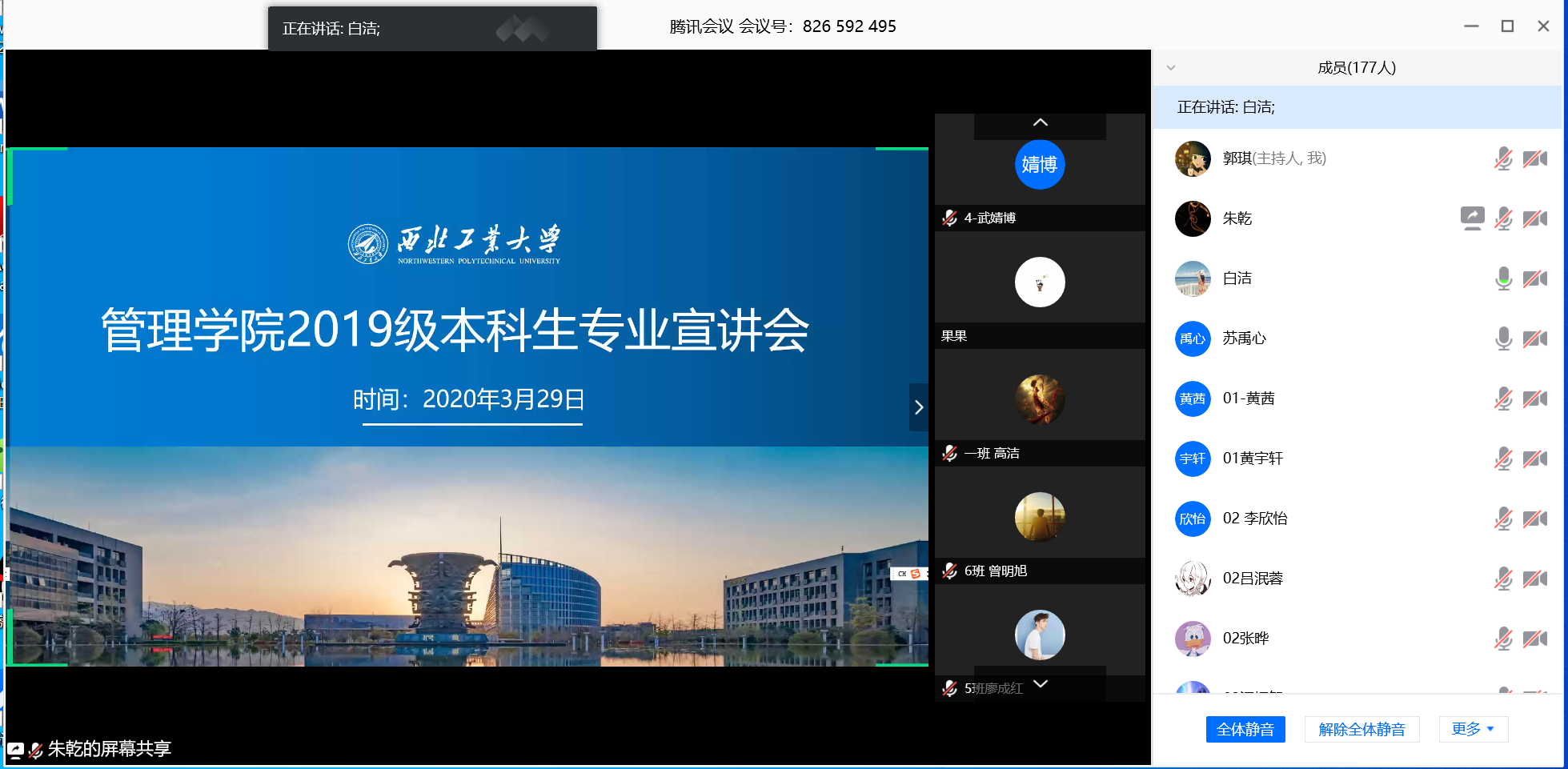 为了主动适应学校大类招生、大类培养新模式,帮助2019级本科生做好专业方向选择,解决学生在学习中遇到有关专业方面的问题和困惑,3月29日14:00,管理学院依托腾讯会议,在线召开了2019级本科生专业及方向选择宣讲会。副院长陈琳、党委副书记曹子尧、各系主任及专业宣讲教师、院长助理兼2019级辅导员白洁、本科教学秘书及教务员、2019级全体本科生及部分家长参加了此次会议。宣讲会由白洁主持。