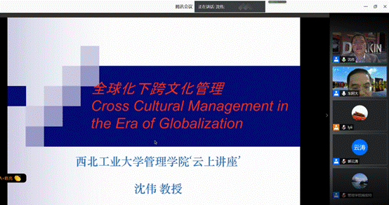 9月16日晚上,我院特邀请澳大利亚墨尔本迪肯大学协理副校长、西北工业大学客座教授沈伟老师带来“云上讲座”--《全球化下的跨文化管理》。讲座通过腾讯会议平台直播,由车阿大院长主持,2020级专业学位研究生共计325人线上聆听了讲座。