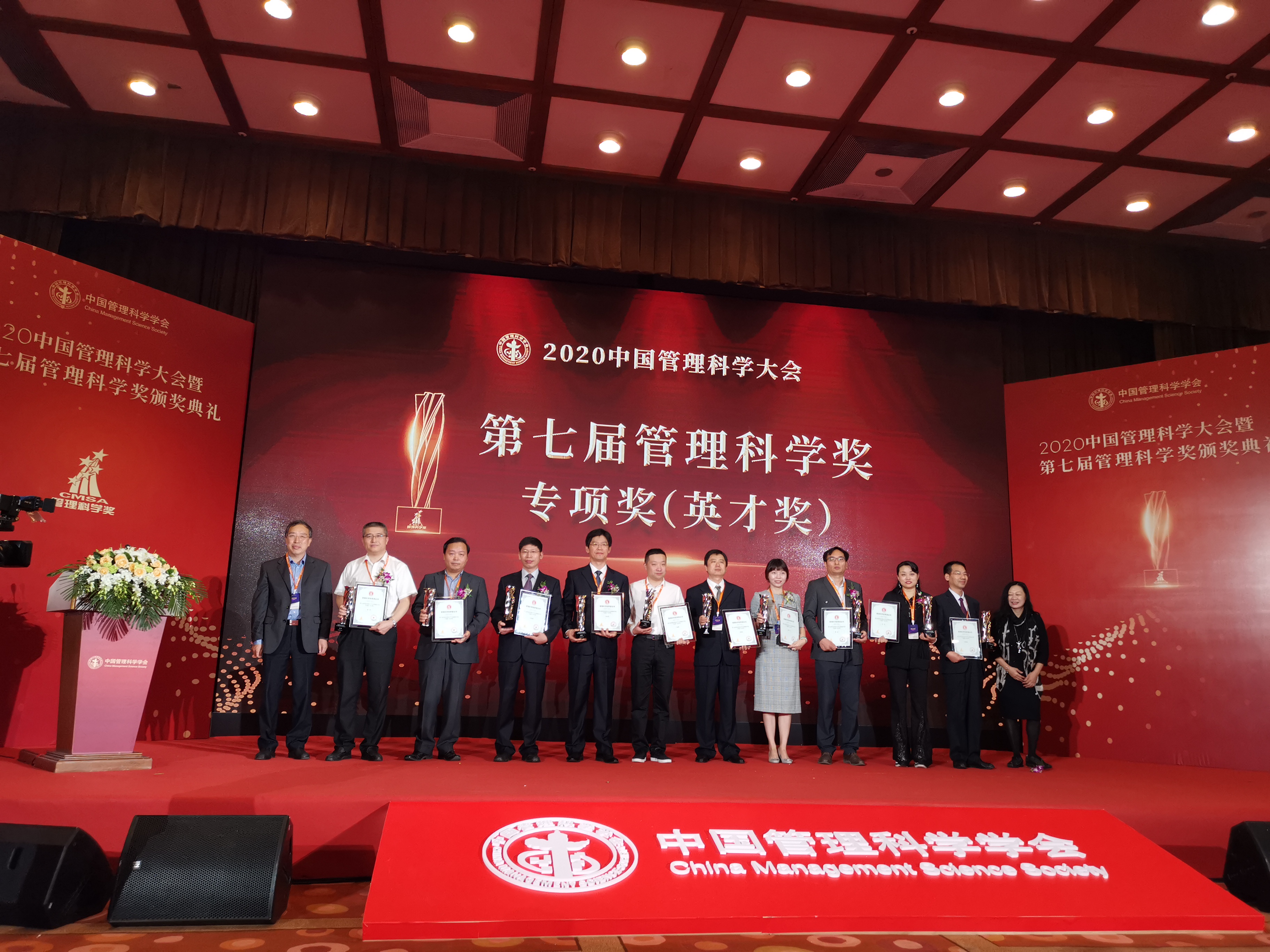 2020年9月27日上午,“2020年中国管理科学大会暨第七届管理科学奖颁奖典礼”在北京香山饭店一层宴会厅举行。管理学院田庆锋教授获得管理科学奖专项奖-英才奖,该奖项是首次针对从事管理研究和实践的个人颁发的奖项,全国共10名,其中来自高校的获奖者3人。本届获奖的其它高校还有大连理工大学、北京理工大学、南京理工大学、北京大学、清华大学等。本届也是我院代表西北工业大学首次获得中国管理科学奖。