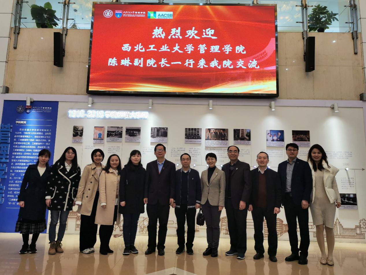 为进一步推动管理学院AACSB国际认证工作,4月9日,我院副院长陈琳、院长助理兼认证办公室主任邵婧、教师代表和学院认证工作人员等一行7人赴西安交通大学管理学院开展认证调研工作。西安交通大学管理学院副院长田军、院长助理舒成利、AACSB办公室主任孙福滨及业务负责老师等参加了调研接待。