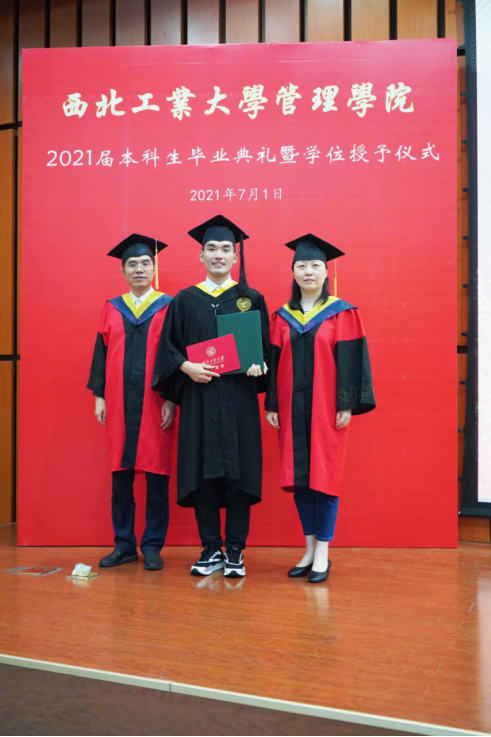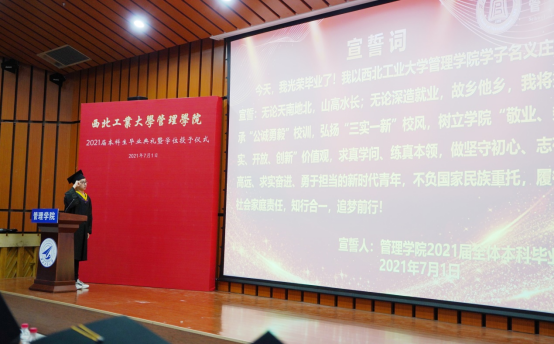 郭宇恒作为毕业生代表发言,他同大家一起回望了四载求学之路,并感谢学校及学院对自己的培养与栽培,他表示,离开学校后会继续身体力行,用实际行动践行身为西工大管院人所具有的时代责任与精神担当!