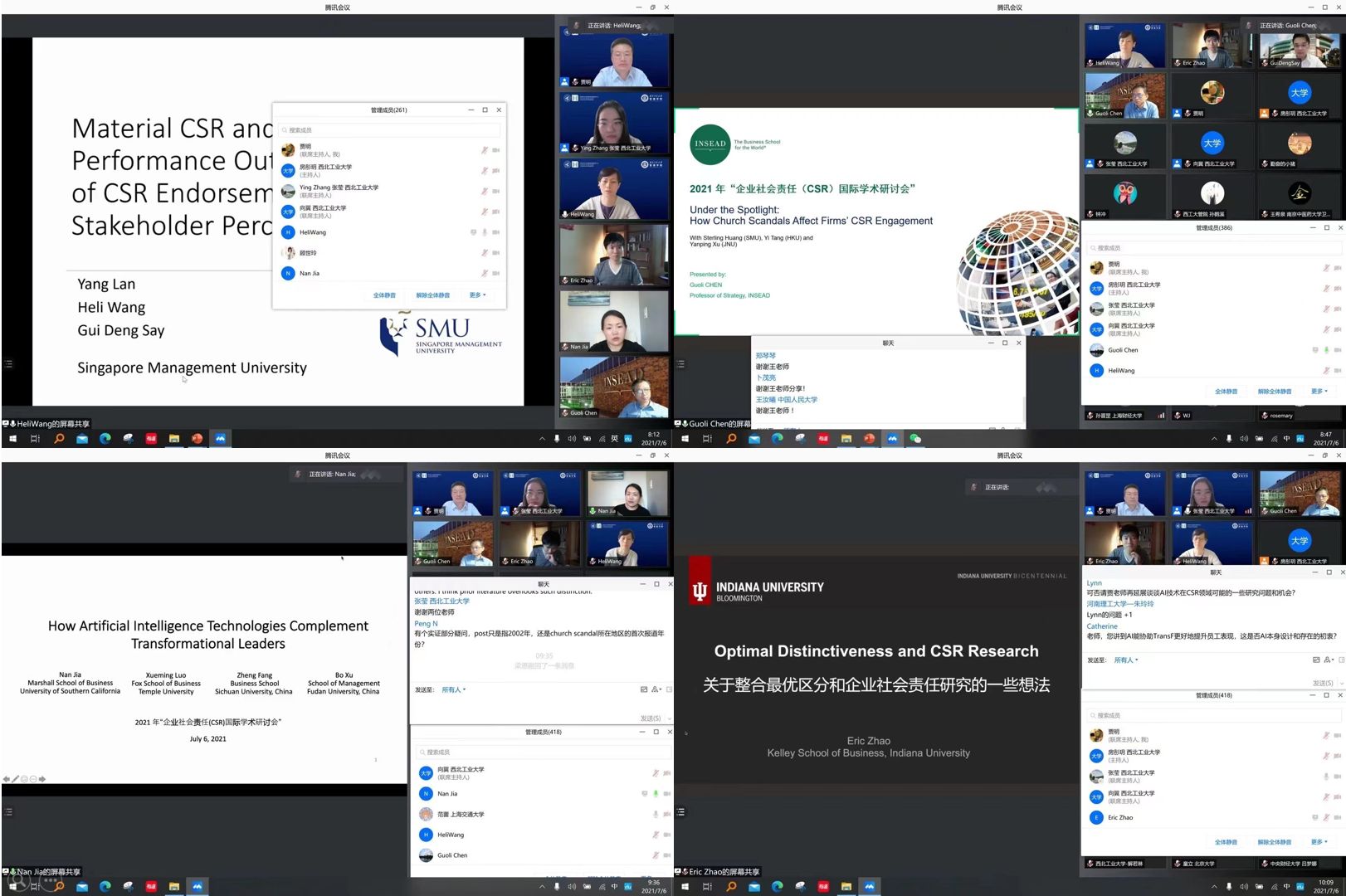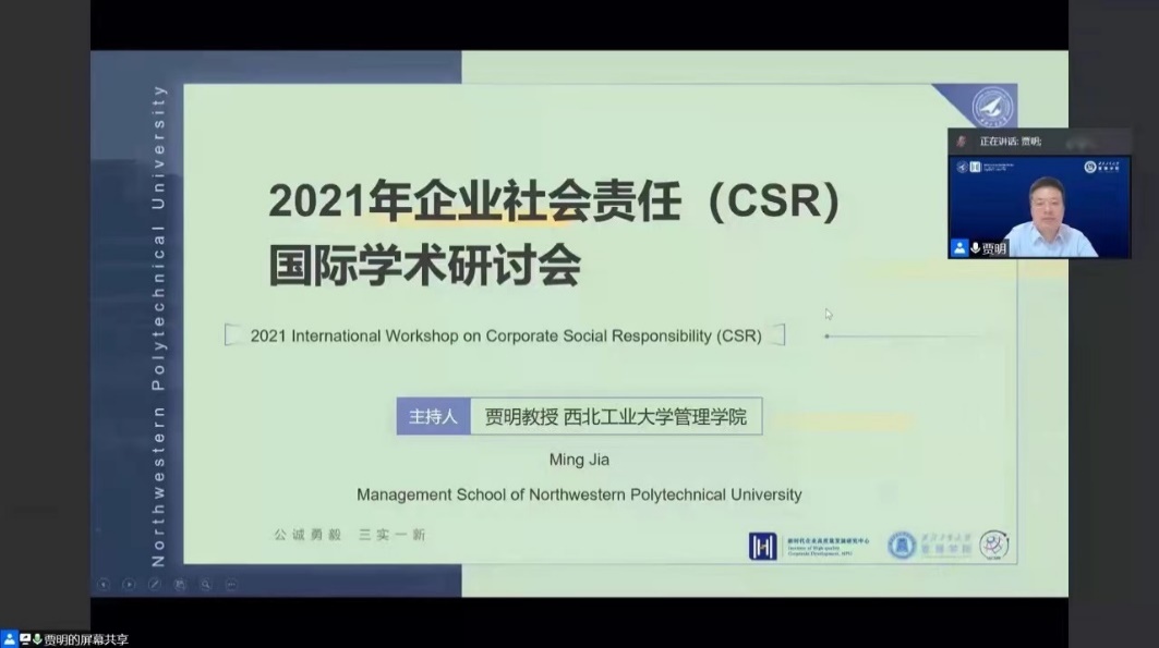 由西北工业大学新时代企业高质量发展研究中心(IHCD)、西北工业大学管理学院、西北工业大学学科建设办公室主办,中国管理研究国际学会(IACMR)、《Journal of Business Ethics》期刊(JBE)协办的2021年“企业社会责任(CSR)国际学术研讨会”于2021年7月6日至7日在腾讯会议线上召开。会议主席由西北工业大学管理学院副院长、新时代企业高质量发展研究中心主任贾明教授担任。大会共接收论文投稿66篇,从其中选择报告论文16篇。会议共组织了4场大会特邀报告,4场平行论坛报告,来自新加坡、法国、美国以及国内高校、院所的430余位代表出席了会议。