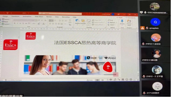 2021年9月27日中午,管理学院2021年秋季学期国际交流项目宣讲会于腾讯会议召开,此次政策宣讲会邀请到学院合作伙伴法国昂热高等商学院亚洲市场推广总监陈丽青,为管理学院同学们讲解法国昂热高等商学院的情况及两校合作项目。学院国际事务办公室外事秘书权梦甜子主持本次会议。