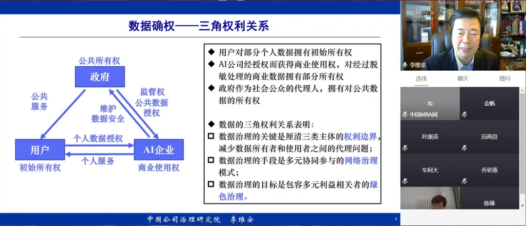 开幕式之后是主题报告,分别由西北工业大学管理学院院长车阿大教授和西安交通大学管理学院副院长田高良教授主持。南开大学讲席教授、中国公司治理研究院院长李维安教授报告的题目为“数字治理与AI企业治理”,在分析“管理滞后于技术、治理滞后于管理”这一瓶颈现象基础上,阐述了企业数字治理理论和AI企业治理体系的构建及其关键问题。中国人民大学商学院院长叶康涛教授报告的题目是“会计业绩评价与企业高质量发展”,他认为会计业绩评价必须进行调整和变革才能帮助企业适应数字经济环境。思科(CISCO)大中华区CFO席晓珲女士报告的题目是“基于企业实践的数字经济思考”,结合近年来思科公司的成功经验阐述了数字经济环境下企业如何进行全局性战略管理。国际数据管理协会中国分会主席汪广盛先生报告的题目是“数据治理:数字经济的基础”,详细描述了十二条组织进行数字管理的理论、原则和方法,并为数据管理人才培养提出对策建议。西北工业大学管理学院会计系主任金帆副教授报告的题目是“范式转型:数字经济与公司治理的时代特征”,阐述了竞争范式和公司治理范式的转型,呼吁通过中国实践理论化构建中国特色管理学理论体系。