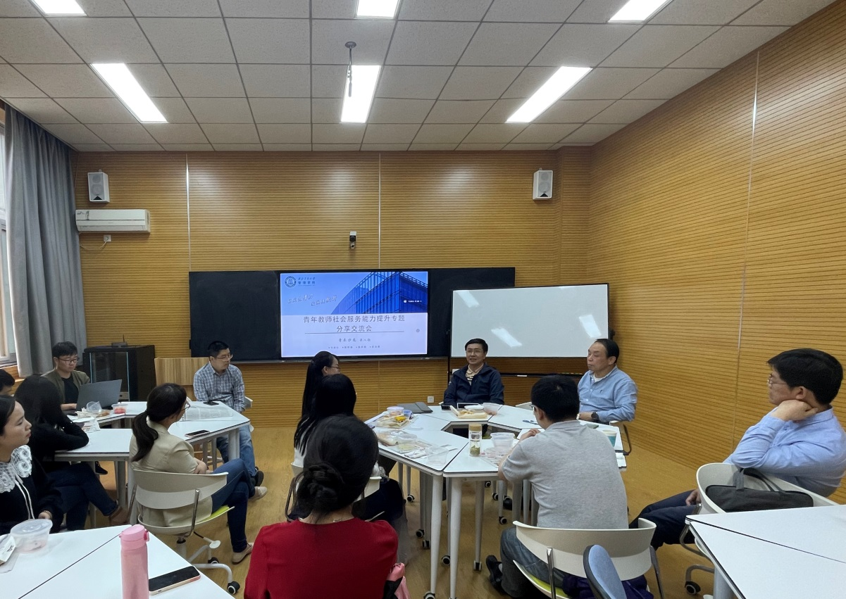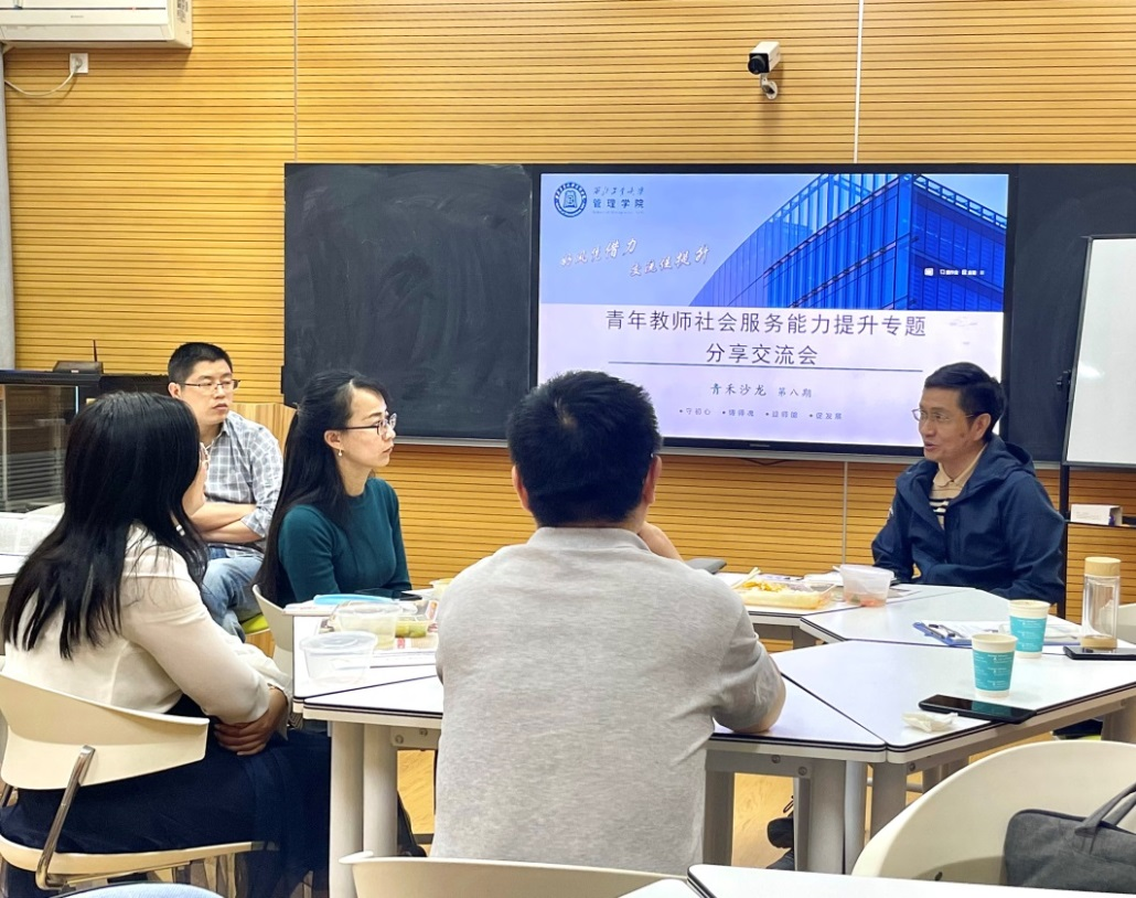 为增进学院青年教师对企业管理实践的认识和理解,提高理论联系实际和专业应用能力,强化服务社会本领,5月18日中午,“青禾沙龙”第八期主题活动特邀请到学院两位资深教师,信管系薛建武教授和管科系欧立雄教授做分享交流。活动以午餐会的形式进行,学院20余名青年教师参加了本次活动,活动由院长助理李乘龙主持。