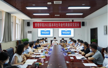 6月23日下午14时,管理学院举办2022届本科毕业生代表座谈交流会。院领导、系主任代表、教师代表、学院办公室、本科教学办、辅导员代表等学院教职工参加,会议由学院党委副书记王兆旭主持。