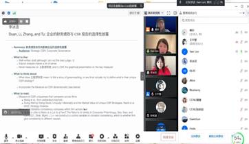 6月29日上午,由贾明教授主持开幕式。他提到,这次是我校举办的第三届企业社会责任研讨会,对于促进学者们在CSR研究上的交流,更好推动CSR和ESG方向的前沿研究具有重要作用。接下来进行了上半场主题报告,新加坡管理大学李光前商学院(SMU,Lee Kong Chian School of Business)的Prof. Heli Wang分享了企业社会责任战略的独特性在其作为保险作用方面的最新研究。