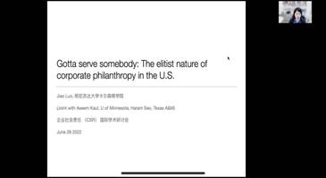 最后,明尼苏达大学卡尔森商学院(University of Minnesota,Carlson School of Management)的Prof. Jiao Luo从企业慈善活动的社会影响方面切入,提炼最新的研究思路。