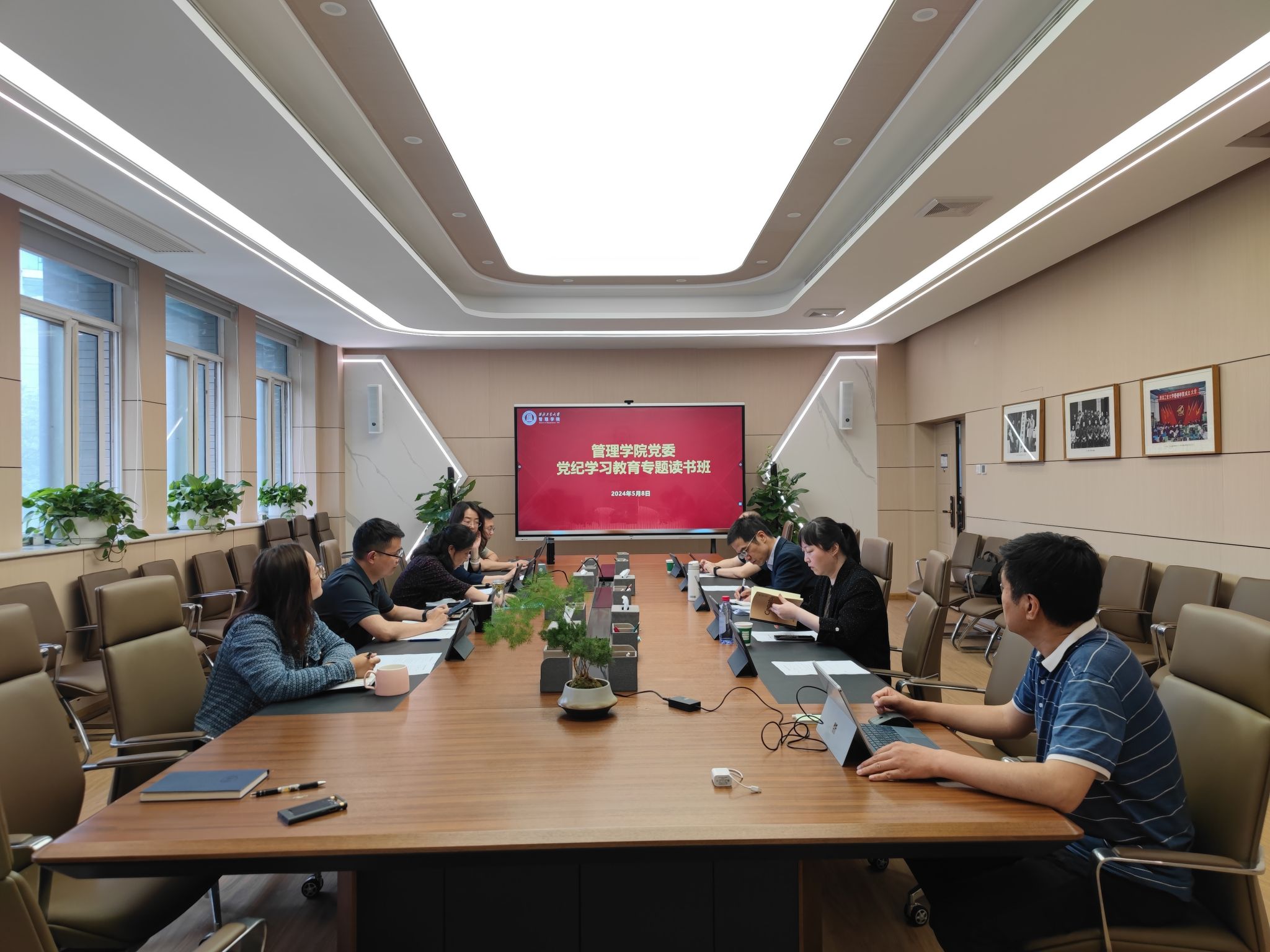5月8日,管理学院党委举行党纪学习教育第一期读书班暨党委理论学习中心组学习会,深入学习习近平总书记关于加强党的纪律建设的重要论述和《中国共产党纪律处分条例》,引导党员干部学纪知纪明纪守纪,推动党纪学习教育走深走实。学院领导班子、中心组成员参加会议,学院党委书记张爽主持会议。