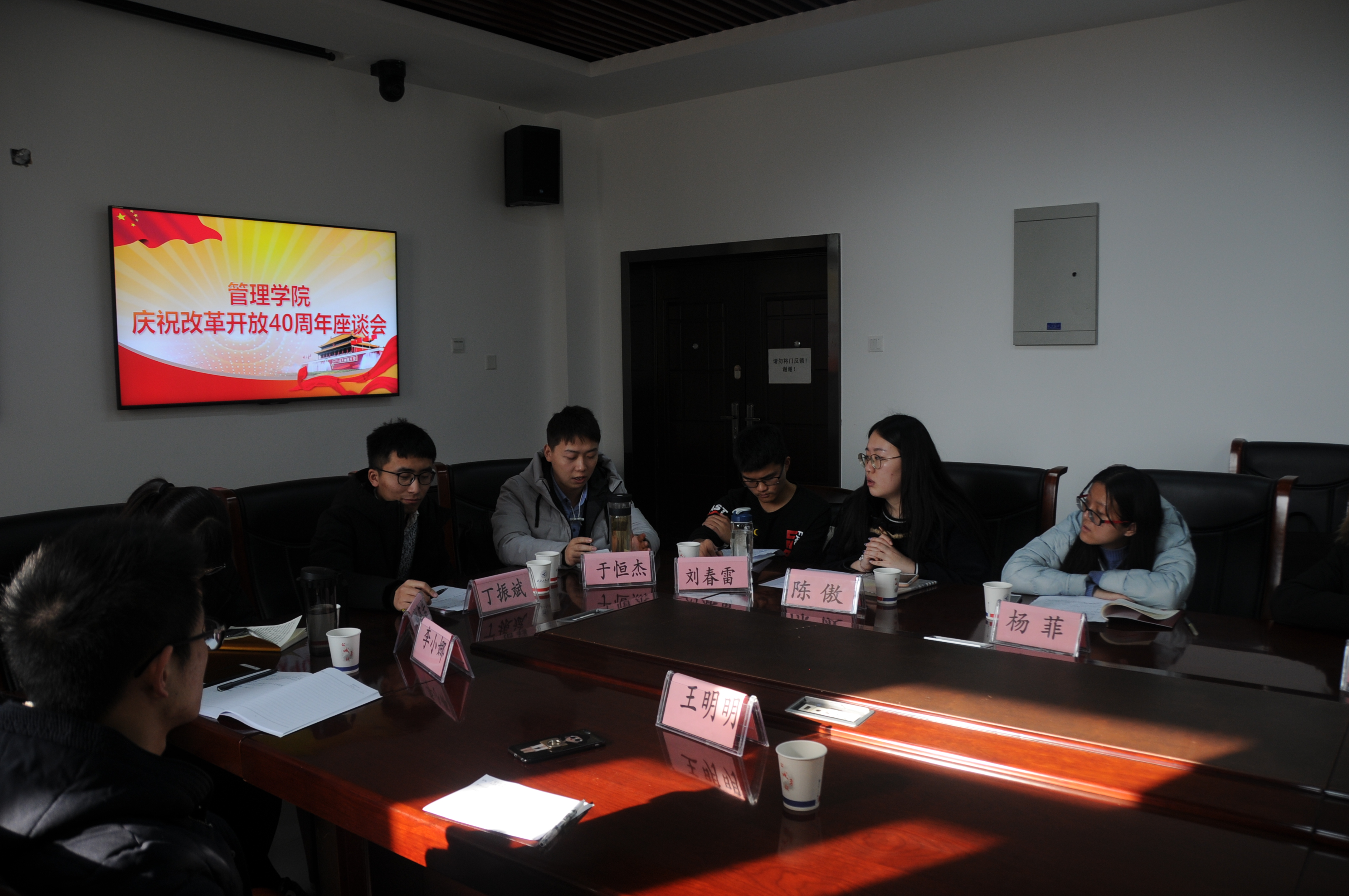 为庆祝改革开放40周年,12月18日上午,管理学院组织全体学生党员在长安校区管理学院210和212观看了庆祝改革开放40周年大会直播。下午,在长安校区管理学院212会议室,召开了庆祝改革开放40周年学生党员代表座谈会。管理学院党委书记李小聪,副书记曹子尧,辅导员赵勇,管理学院学生党员代表参加了座谈会。会议由赵勇主持。