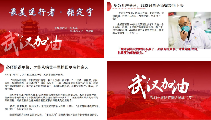 2月11日、14日支部同志们统一学习 “张定宇”等人的先进事迹,各位党员同志线上发表自己的学习感悟,虽然我们不能和医生一样战斗在第一线救死扶伤从,研制对抗病毒的疫苗,但是我们应该尽己所能,号召周围的群众做好防控工作,面对谣言能够做到“不信谣,不传谣”;关注相关新闻报道,了解疫情防控措施和情况;注意个人卫生,服从统一安排。