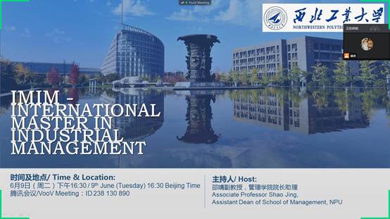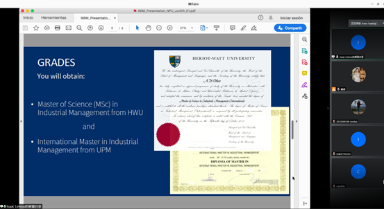 2020年6月9日下午16时30分,管理学院联合西班牙马德里理工大学,于腾讯会议举办IMIM国际硕士联合培养项目线上宣讲会。本次宣讲会由管理学院院长助理邵婧老师主持。