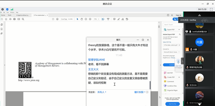 在分析理论的过程中,夏老师也鼓励学生积极参与,在讲解过程中抛出问题促进思考的同时,也让同学们对如何进行学术写作以及理解夏老师发表的系列文章进行课堂分享,在分享过程中夏老师也及时对相关问题进行解析,并强调学术诚信和道德的重要性,将“加强品德修养”和“增长知识见识”有效融入课堂。