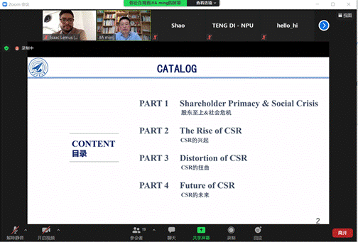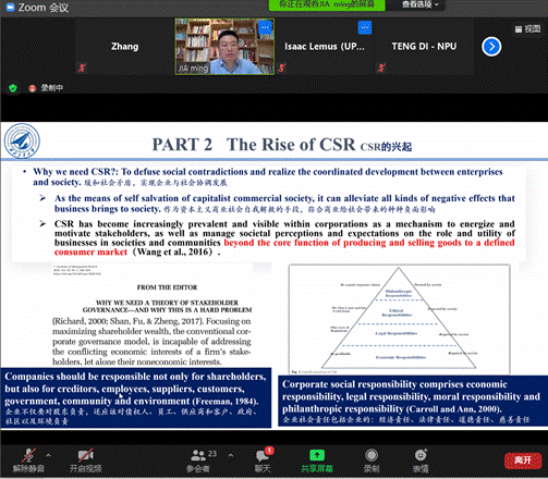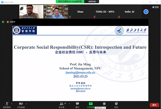 随后,管理学院副院长贾明教授带来了题为“Corporate Social Responsibility: what we know, what we don’t know and what should be”的主题学术报告,同参会的各位学者、学子共同交流,分享知识。