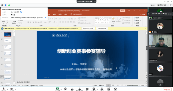 为响应学校创新创业文化月工作要求,营造良好的创新创业氛围,提升学院学生在双创比赛上的技能,2022年11月27日19时,2022年创新创业文化月系列活动——管理学院创新创业比赛专题讲座成功在线上举办。讲座邀请了王莉芳教授,学院党委副书记王兆旭、各年级辅导员和全体学生参加了讲座,讲座由王兆旭主持。